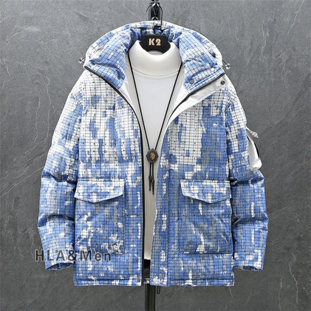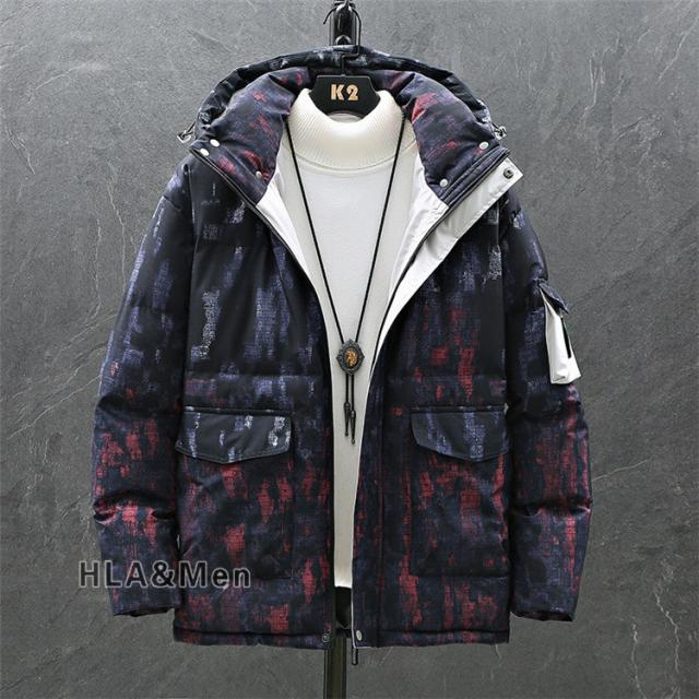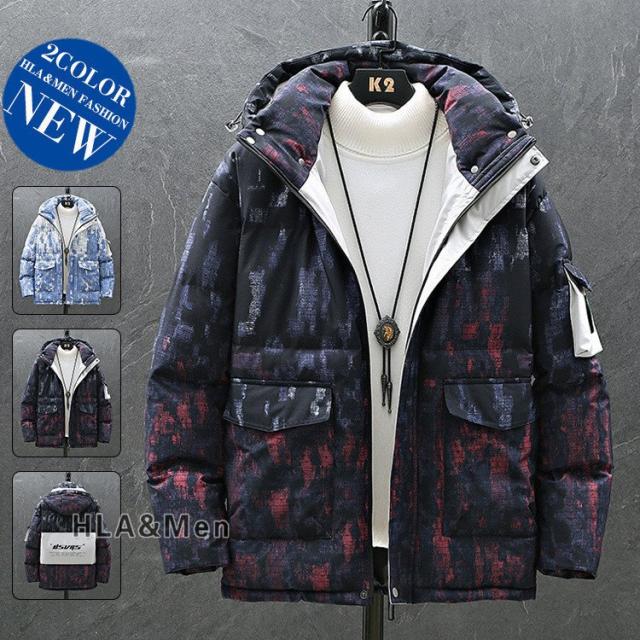 厚手ジャケット メンズ ダウンジャケット 白ダウン 染め 防寒 アウター フード付き おしゃれ チェック柄