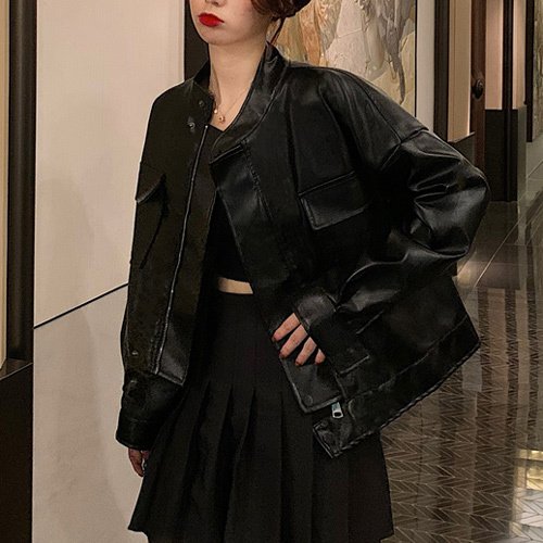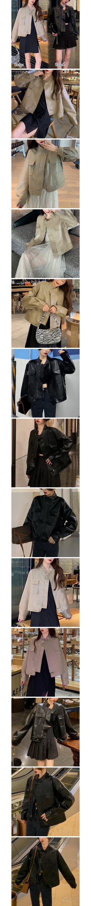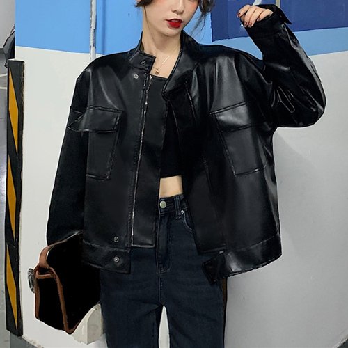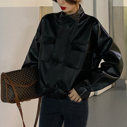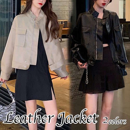 フェイクレザー スタンドカラー ジャケット レディース シンプル きれいめ 可愛い カジュアル おしゃれ