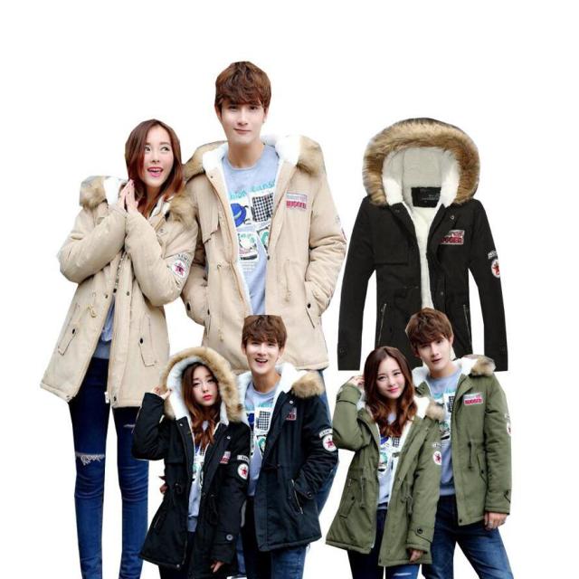 二点/男女兼用 ペアルック メンズ秋冬ダウンジャケット/フード付き/裏起毛ジャケット/綿入りジャケット/厚?