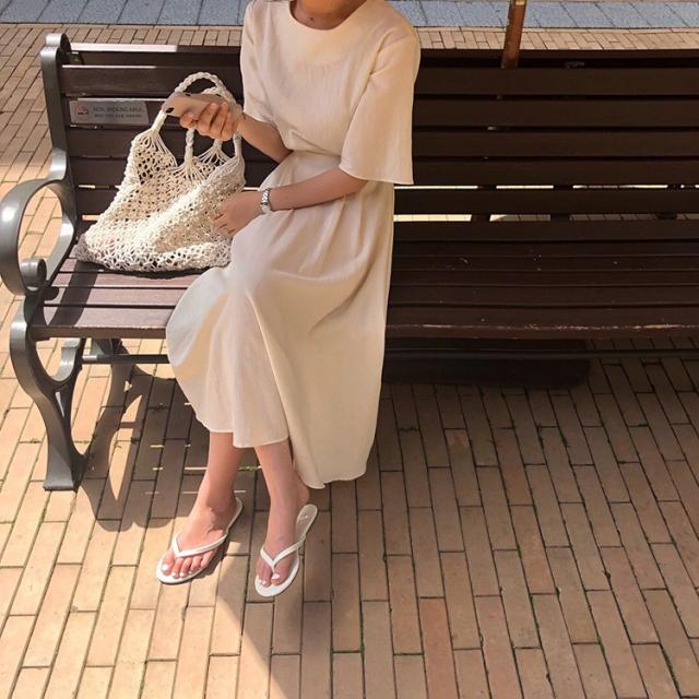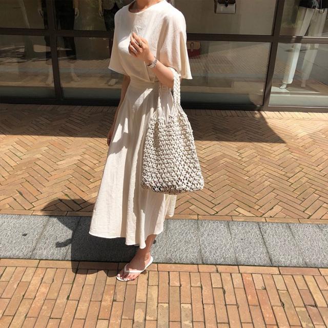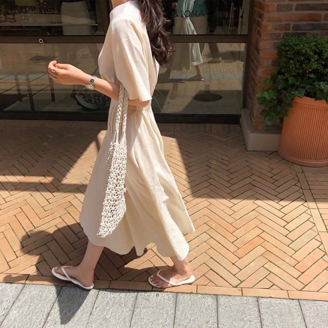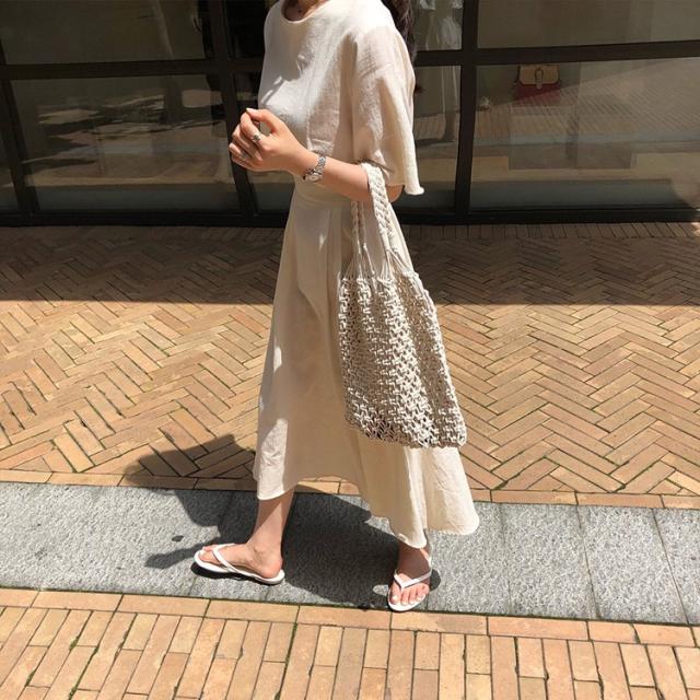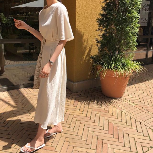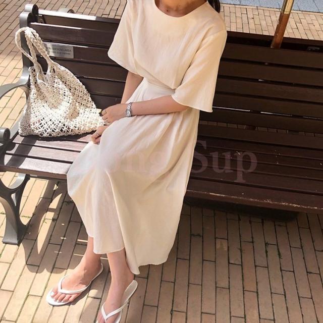ワンピース レディース 40代 キレイめ マキシワンピース 春夏 半袖ワンピース 無地 リネン 韓国風フレアスカート オシャ 着痩せ 大人可愛い30代 50代