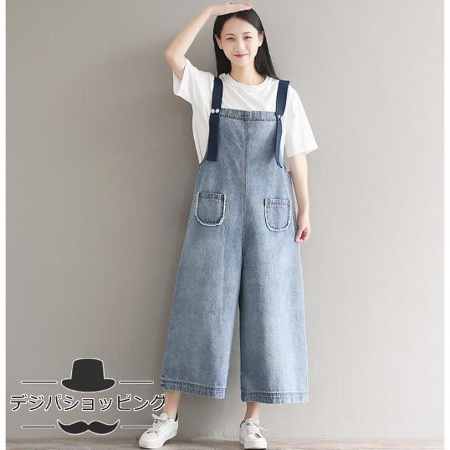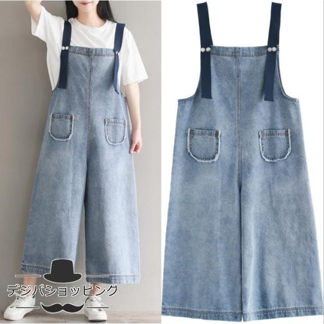 きれいめ ガウチョパンツ 着痩せフォーマル レディース デニムサロペット★ダメージオーバーオール ジーンズ 20代30代40代 体型カバー デニムパンツ