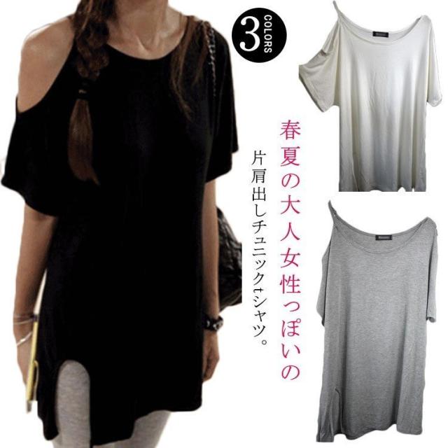 大人っぽいオフショルダー!片肩出し トップス Tシャツ セクシー チュニック 半袖 長袖 Tシャツ オフショルダー カットソー 春夏 レディース