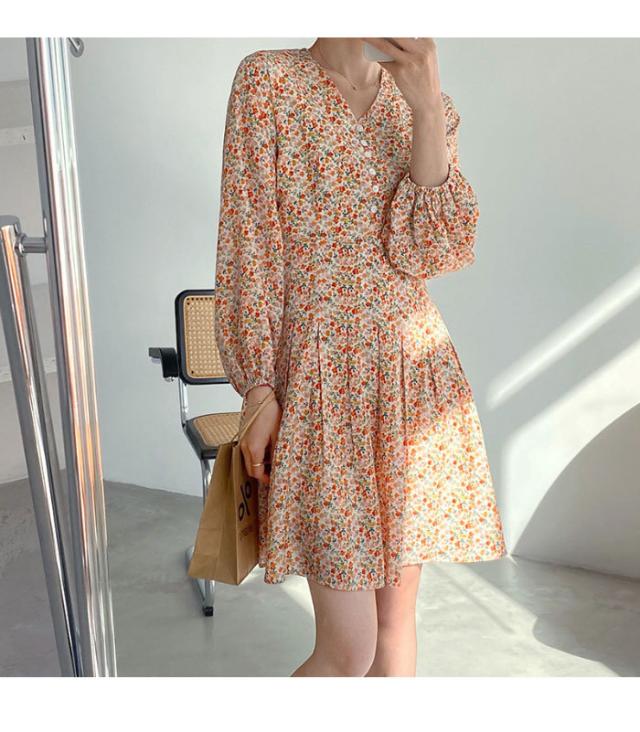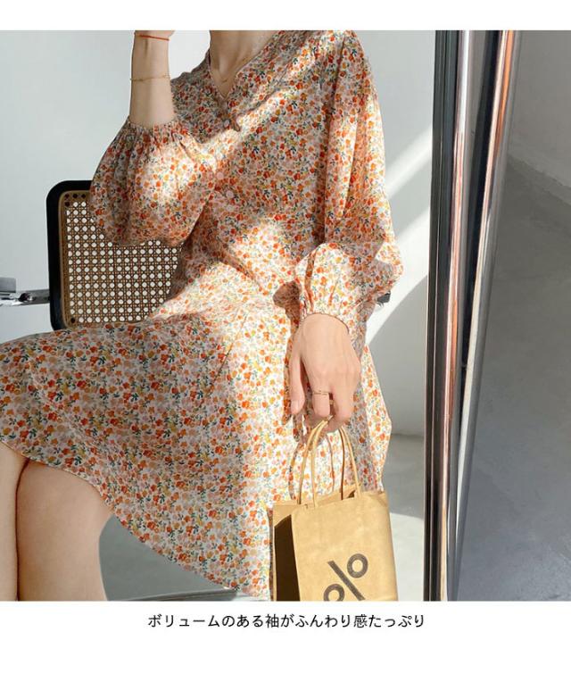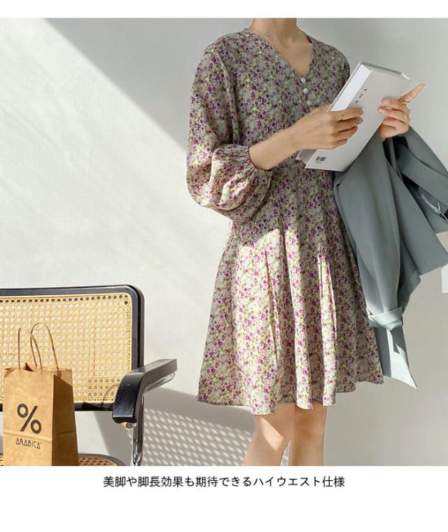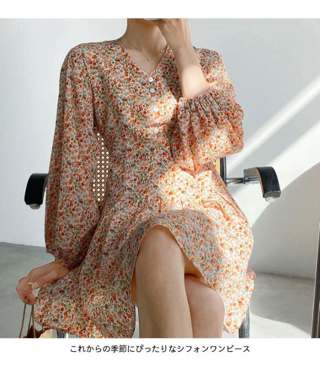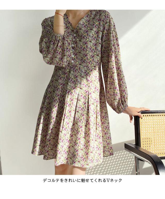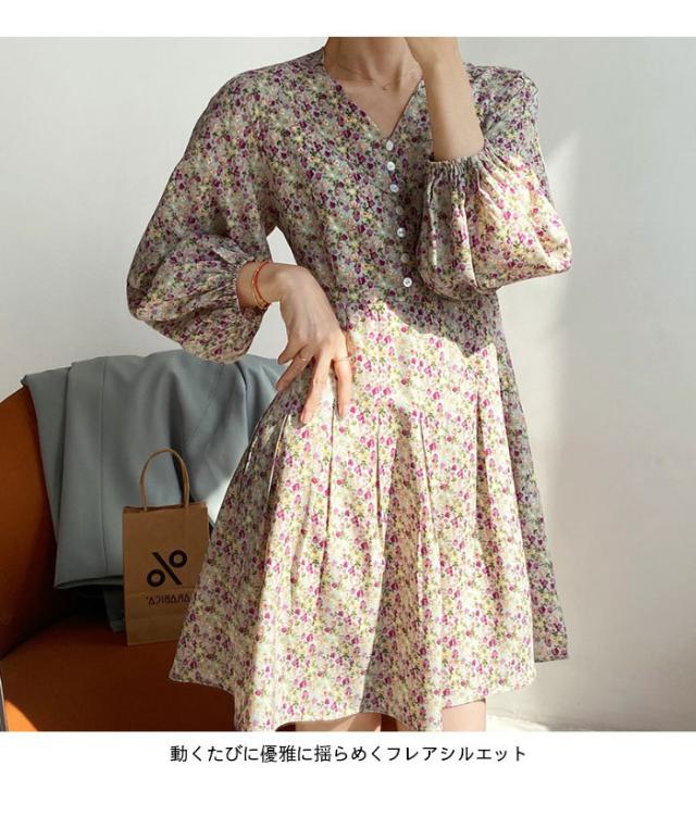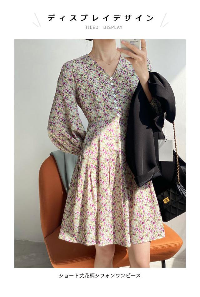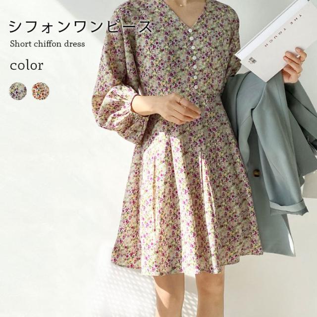 【送料無料】シフォンワンピース レディース ワンピース ショートワンピース フレアワンピース 花柄 花柄ワンピース ショート丈 Vネック フレア
