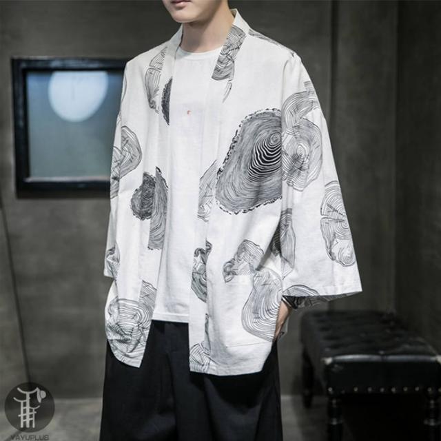 羽織 甚平風 メンズ トップス カーディガン 開襟シャツ 柄 涼しい カジュアルシャツ 旅行 薄手 春服 春 夏 ライトアウター 5分袖 半袖 ファッション 代引不可