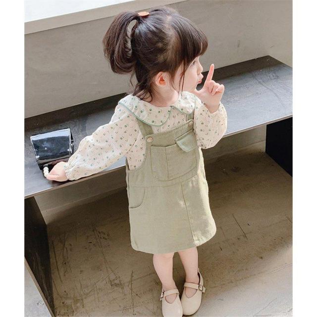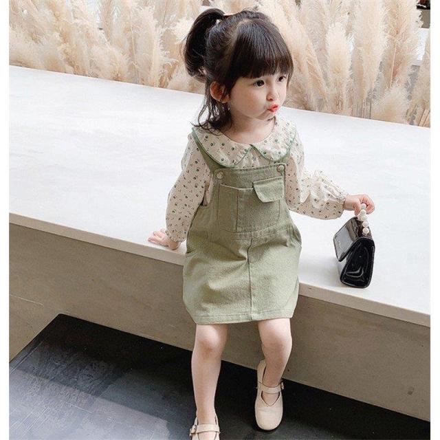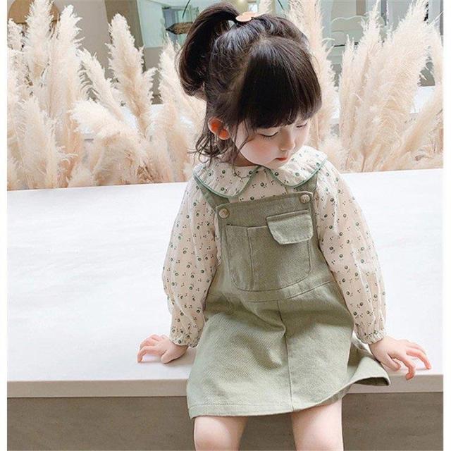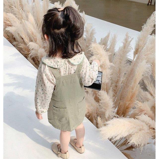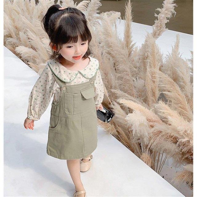 子供服 セットアップ キッズ 女の子 長袖 春服 上下セット トップス ブラウス シャツ 花柄 ワンピース サロペット 韓国子供服 ベービー おしゃれ 可愛い 通学着
