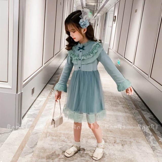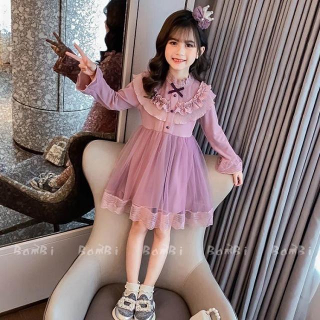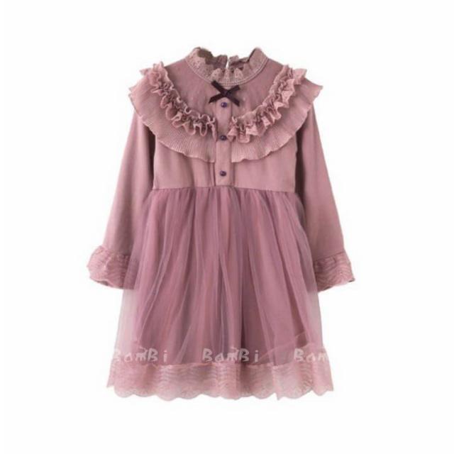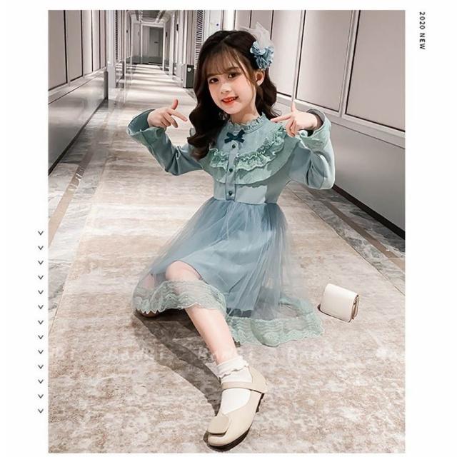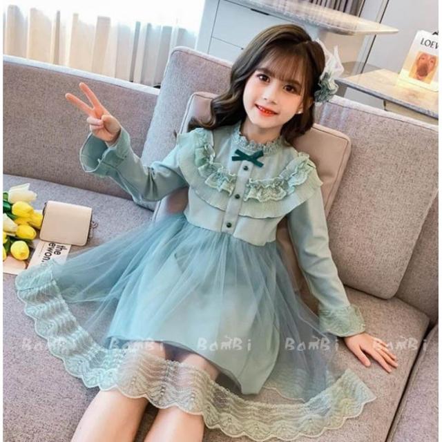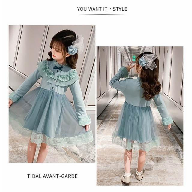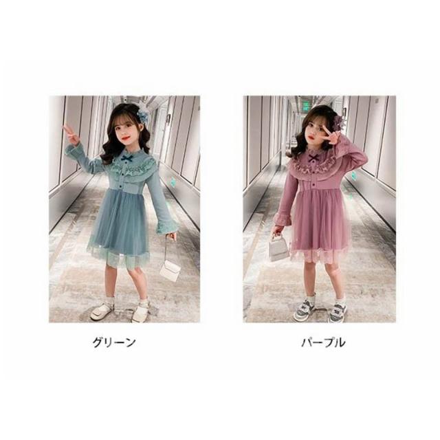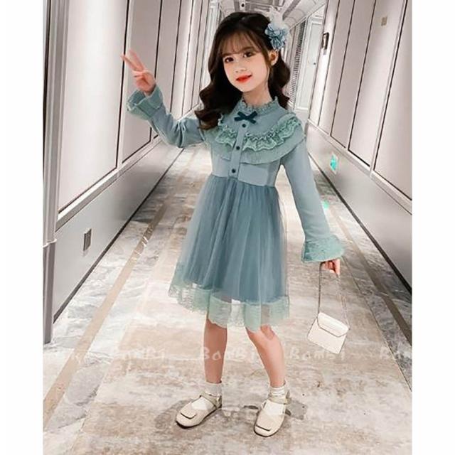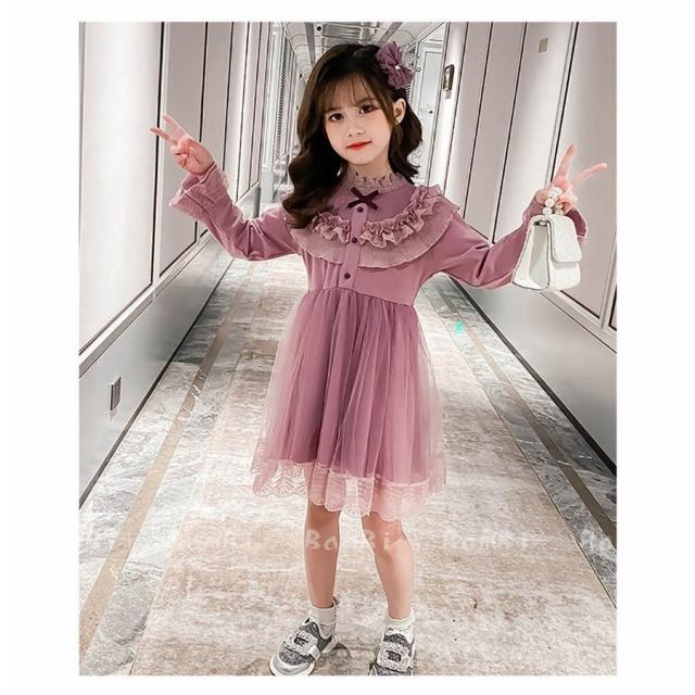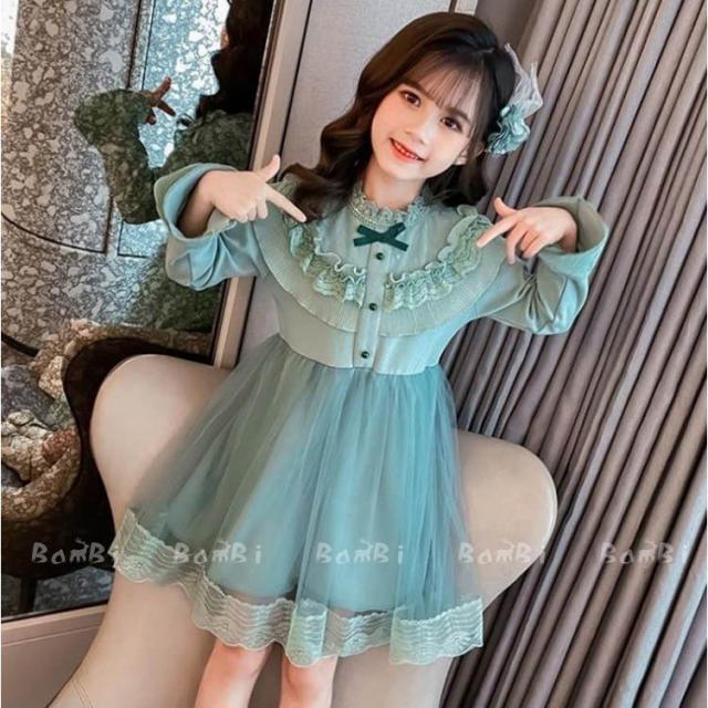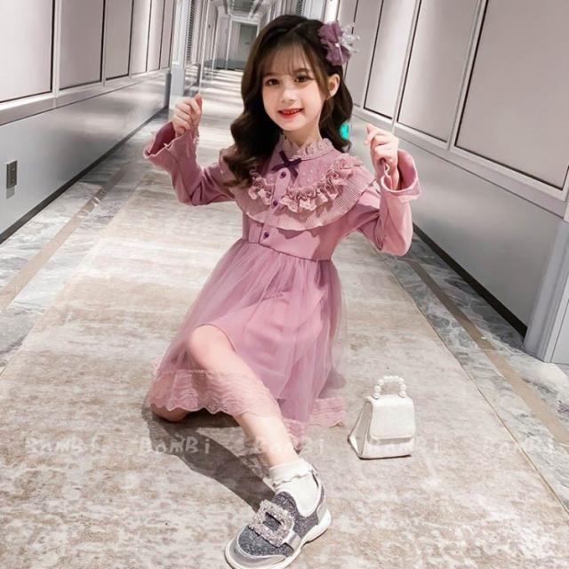 ワンピース キッズ 長袖 子供服 女の子 春秋 キッズワンピース レースワンピース チュール 花柄 子供ドレス ジュニア お姫様 おしゃれ 可愛い カジュアル 新品