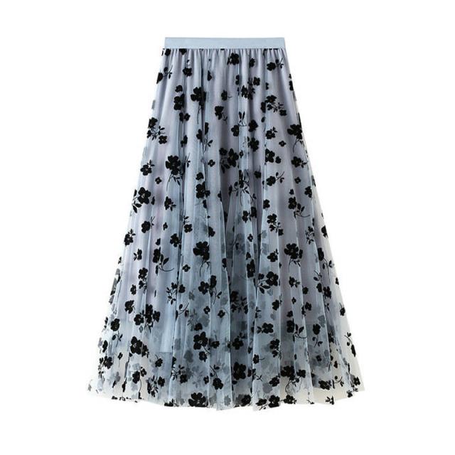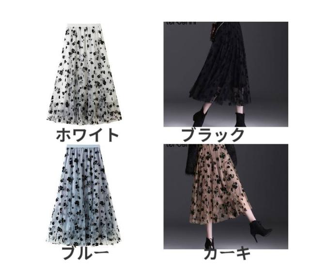 スカート レディース チュールスカート 夏 花柄 ロング マキシ丈 プリーツスカート フレアスカート ウエストゴム オシャレ ボトムス 着痩せ 通勤 春