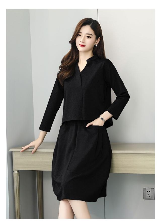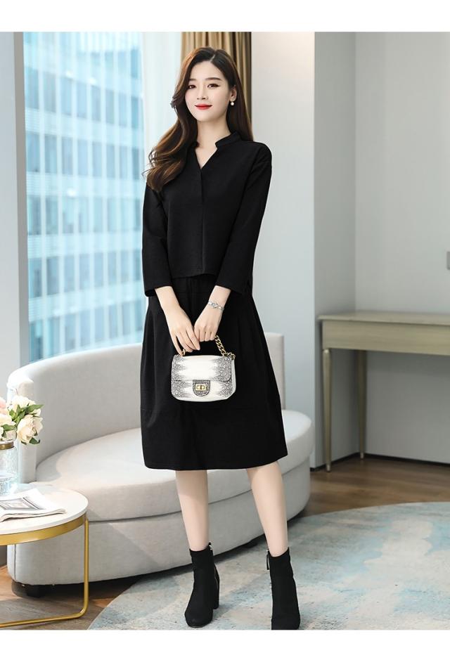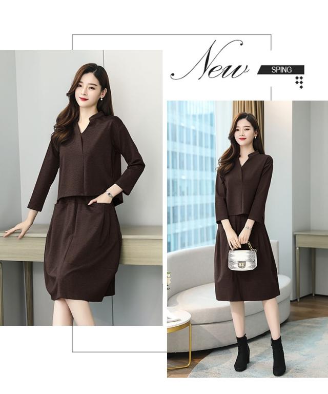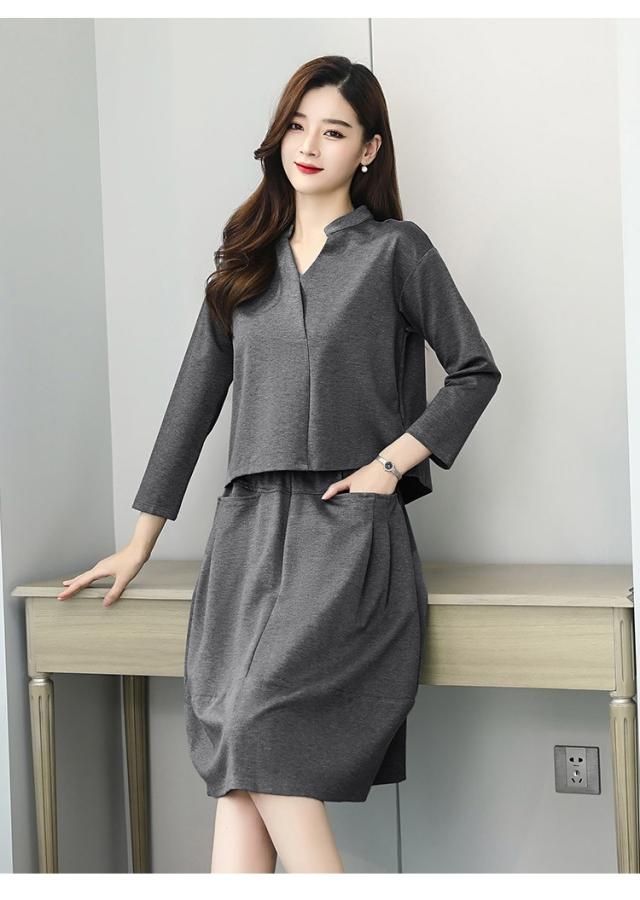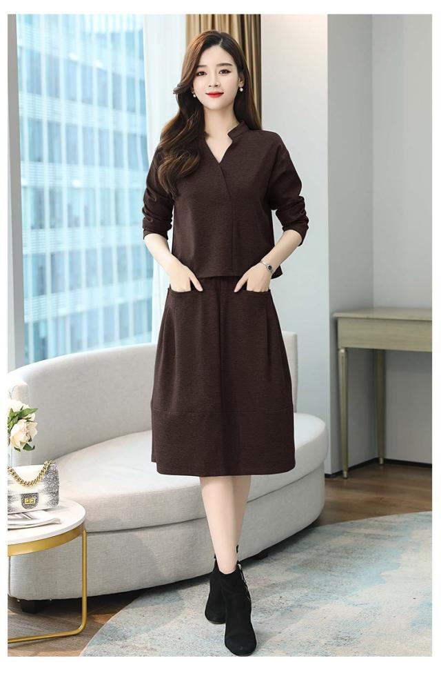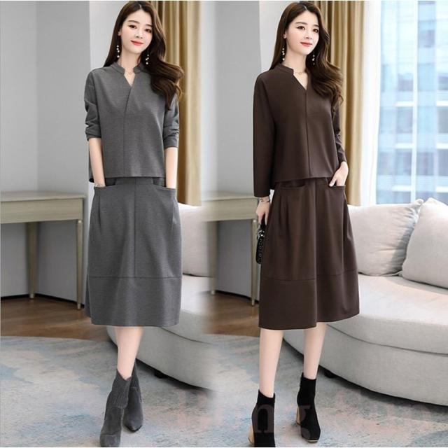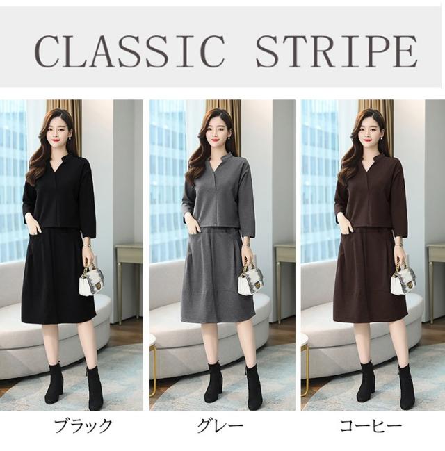 ワンピース2点セット レディース 40代 キレイめ 膝丈ワンピース 秋冬 長袖ブラウス Vネック 無地 ロングスカート オシャレ着痩せ 大人 上品 30代 50代