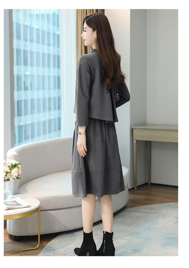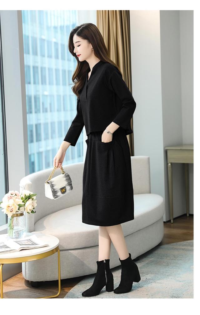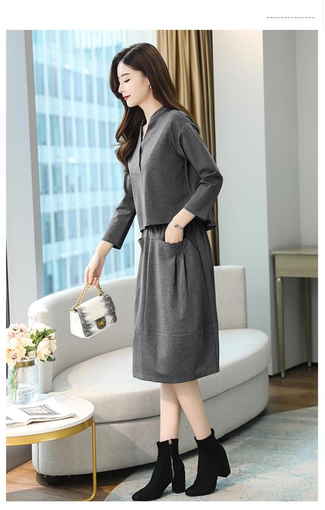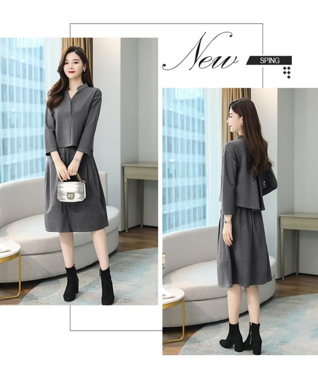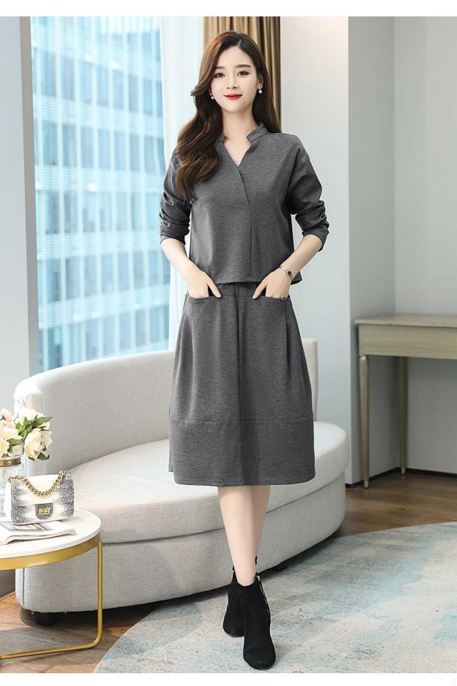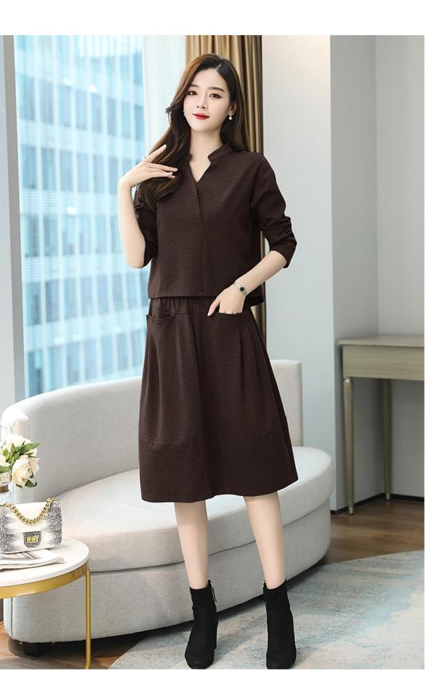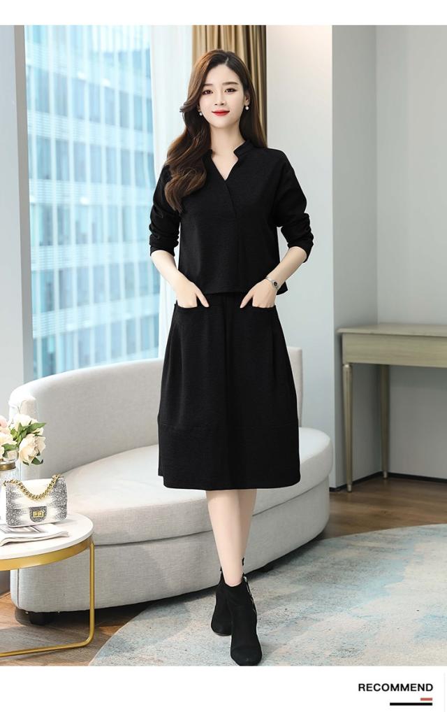 ワンピース2点セット レディース 40代 キレイめ 膝丈ワンピース 秋冬 長袖ブラウス Vネック 無地 ロングスカート オシャレ着痩せ 大人 上品 30代 50代