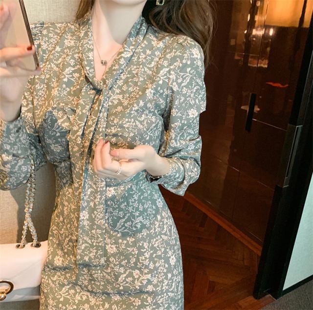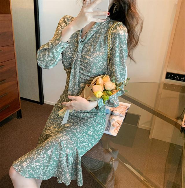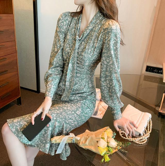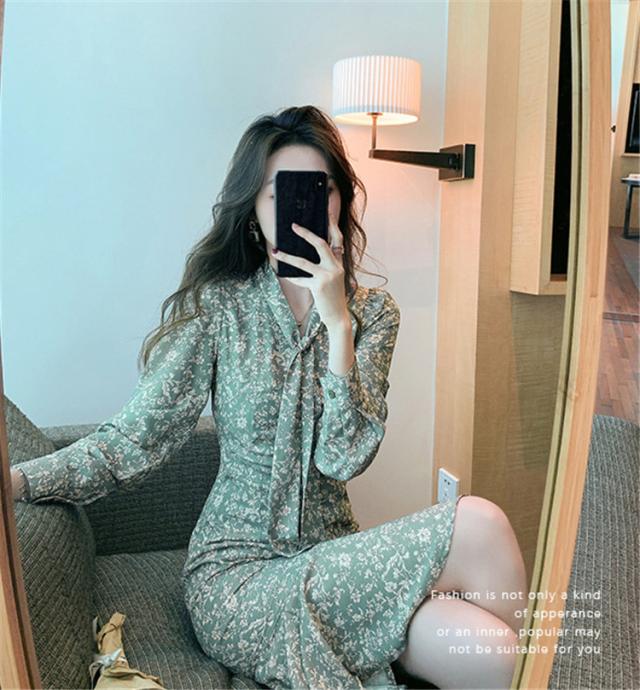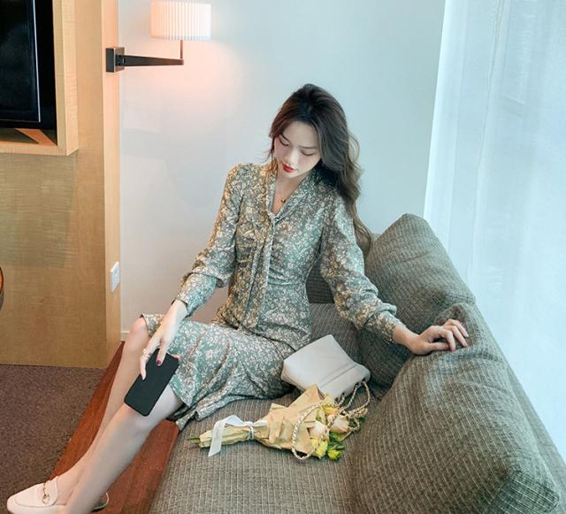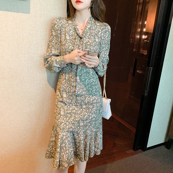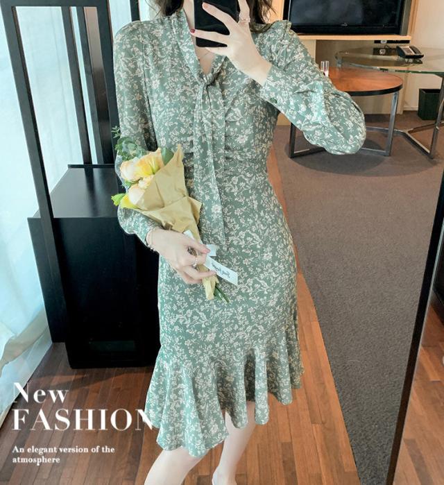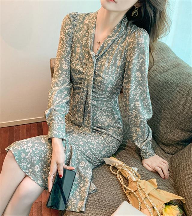 ワンピース レディース 40代 20代 きれいめ 春服 長袖 花柄ワンピース ロング Vネック リボン Aライン ドレス 大きいサイズ おしゃれ 着痩せ 上品 通勤 OL 新品