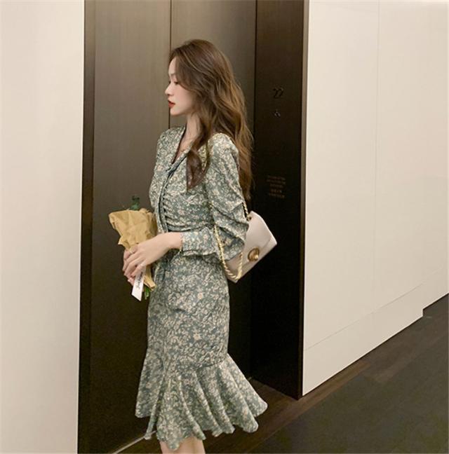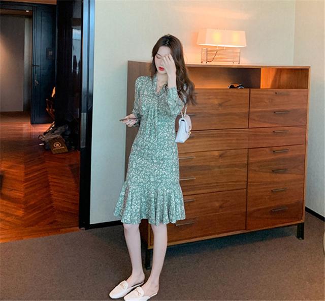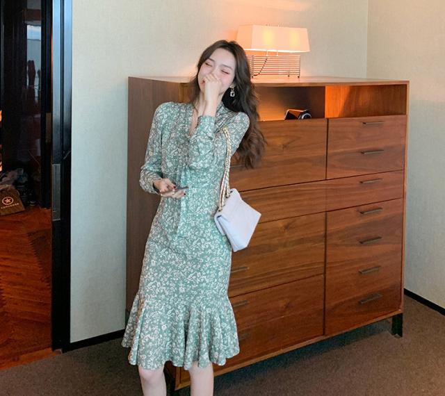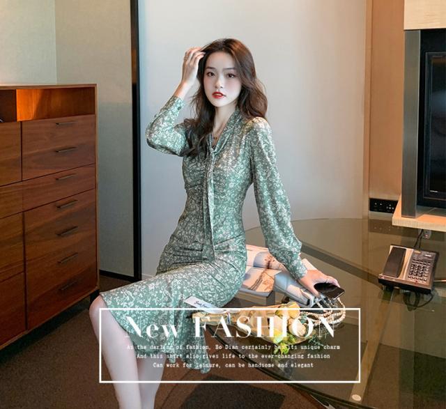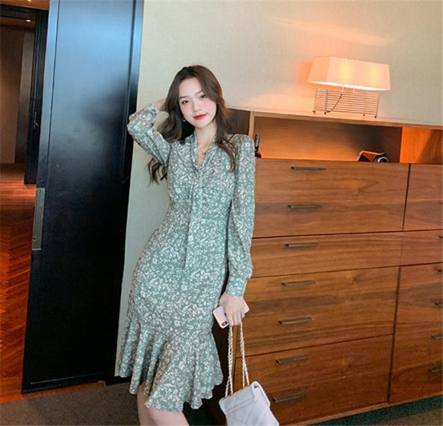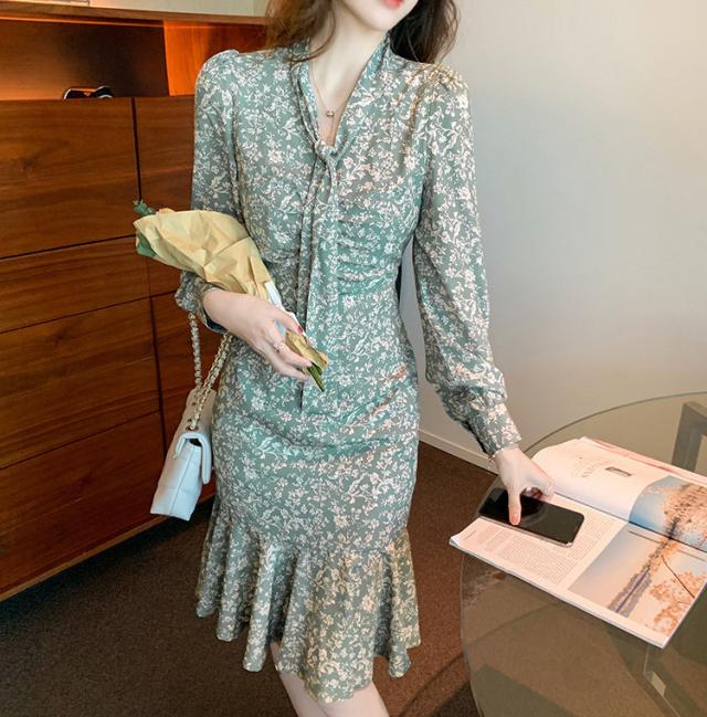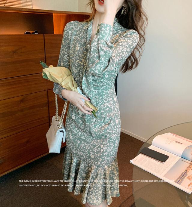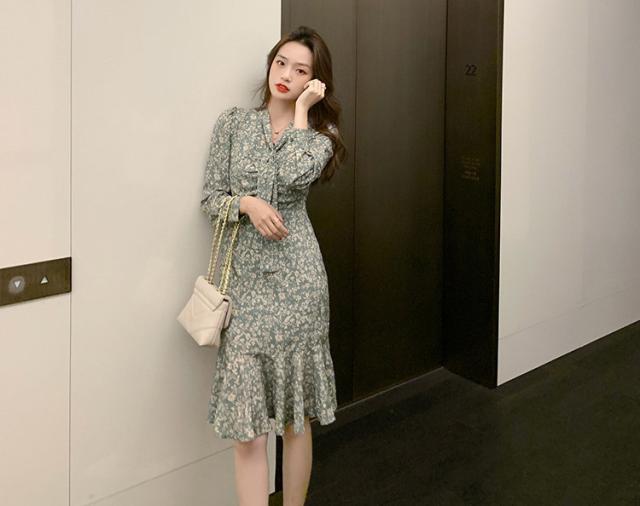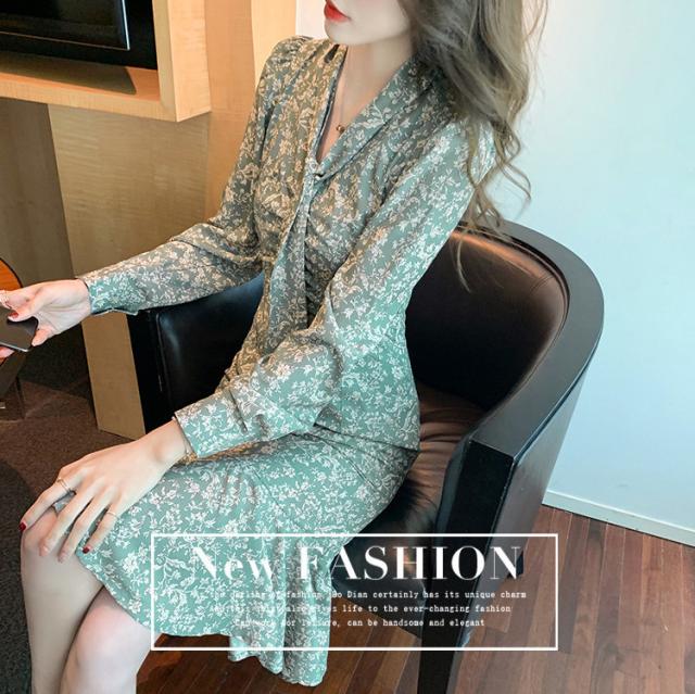ワンピース レディース 40代 20代 きれいめ 春服 長袖 花柄ワンピース ロング Vネック リボン Aライン ドレス 大きいサイズ おしゃれ 着痩せ 上品 通勤 OL 新品