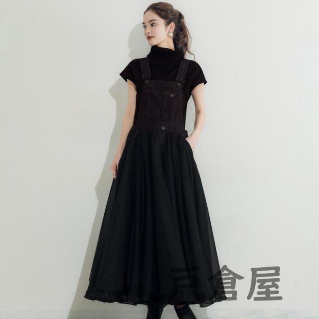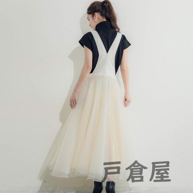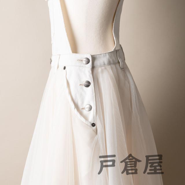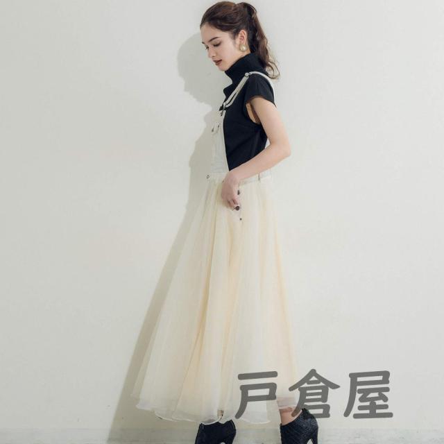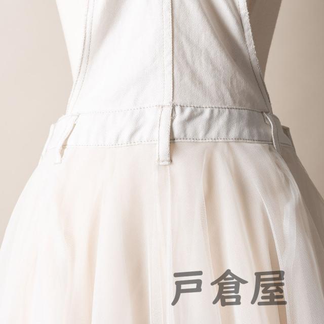 ワンピース レディース サロペット オーバーオール ジャンパースカート サロペット チュールドッキングデニムジャンパースカート 大人 可愛い 洋服チュール