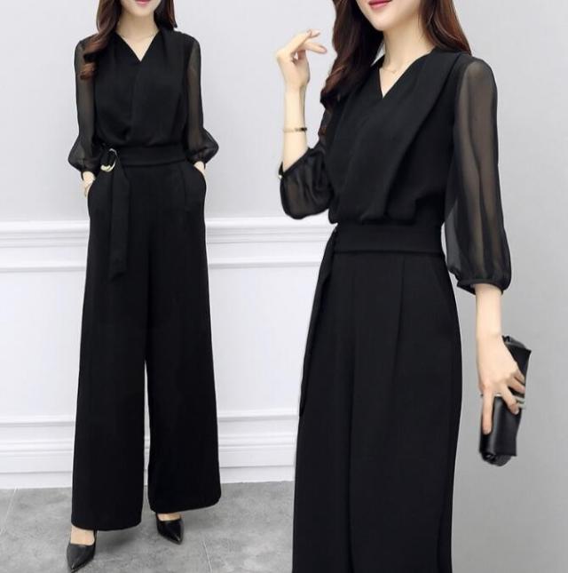 オールインワン レディース シフォン パンツドレス 結婚式 大きいサイズ 体型カバー セットアップ ガウチョパンツ 通勤 二次会