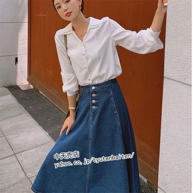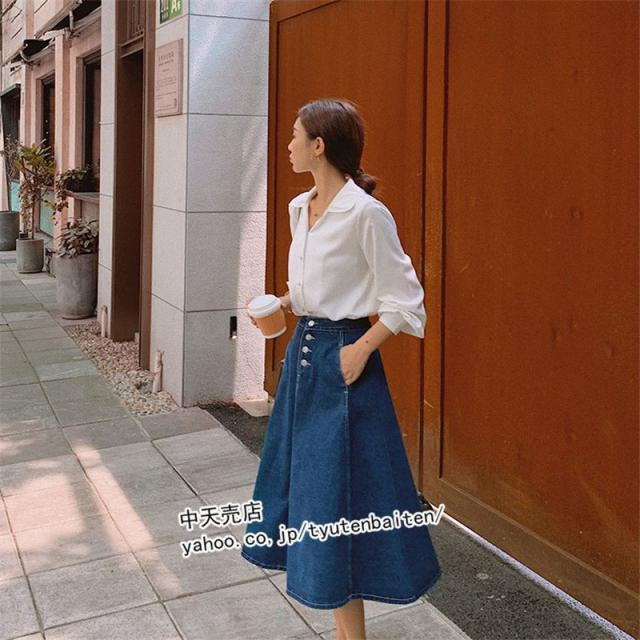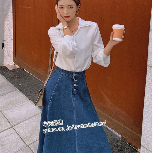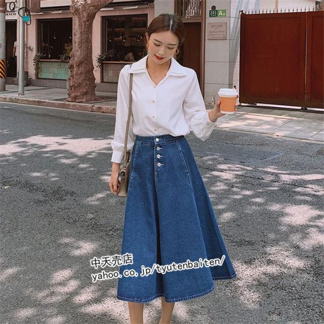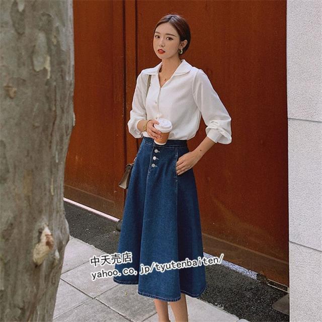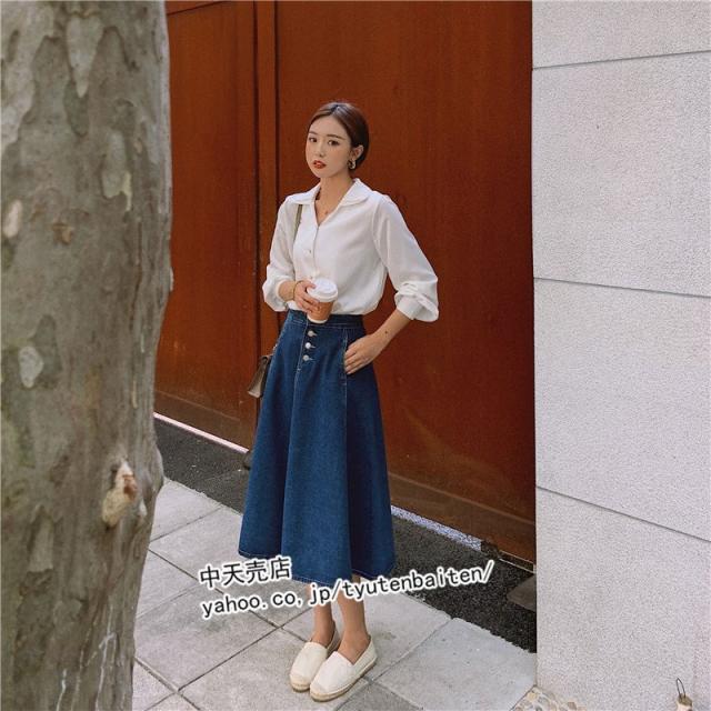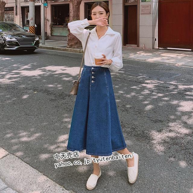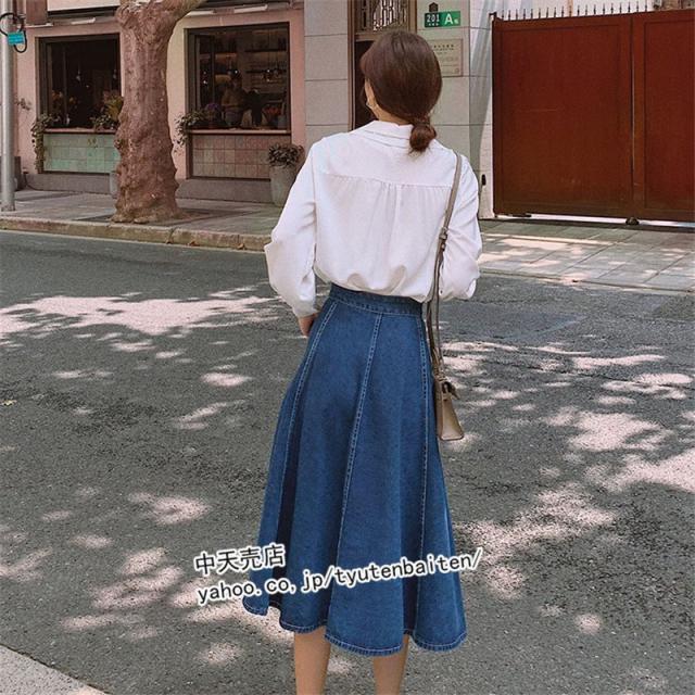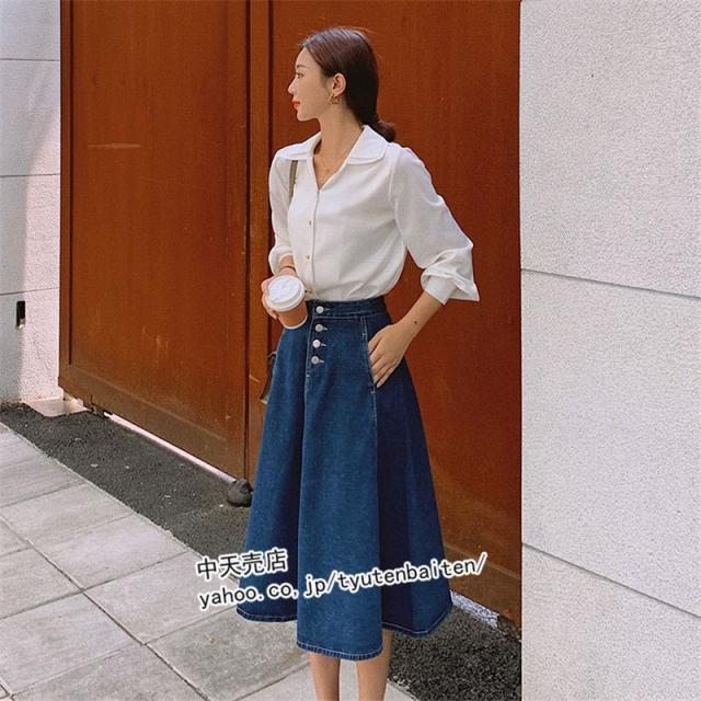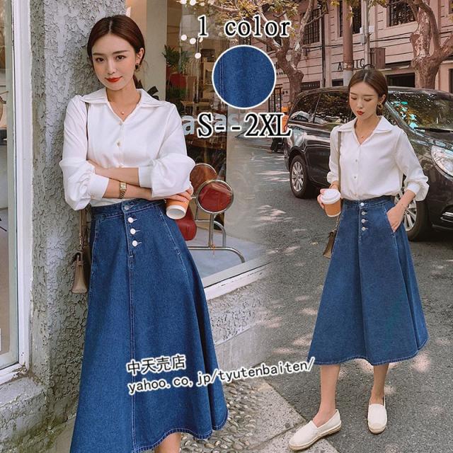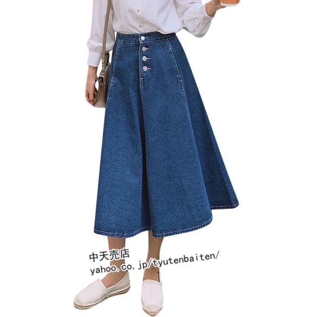 スカート デニムスカート Aラインデニムスカート 膝丈デニムスカート 無地 ファッション カジュアルデニムスカート ボトムス 着痩せ 通勤 レディース 秋冬2021