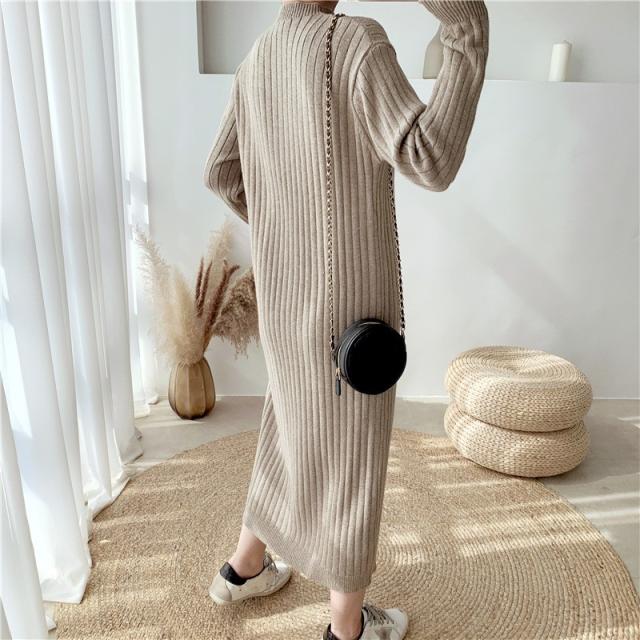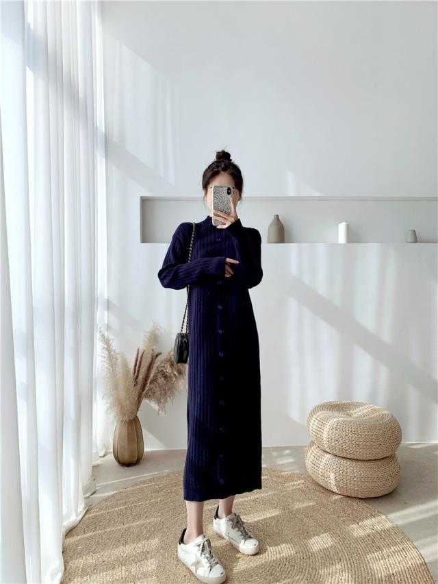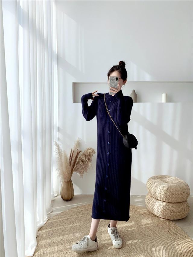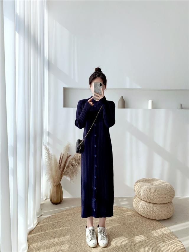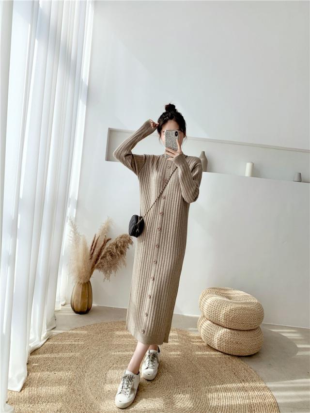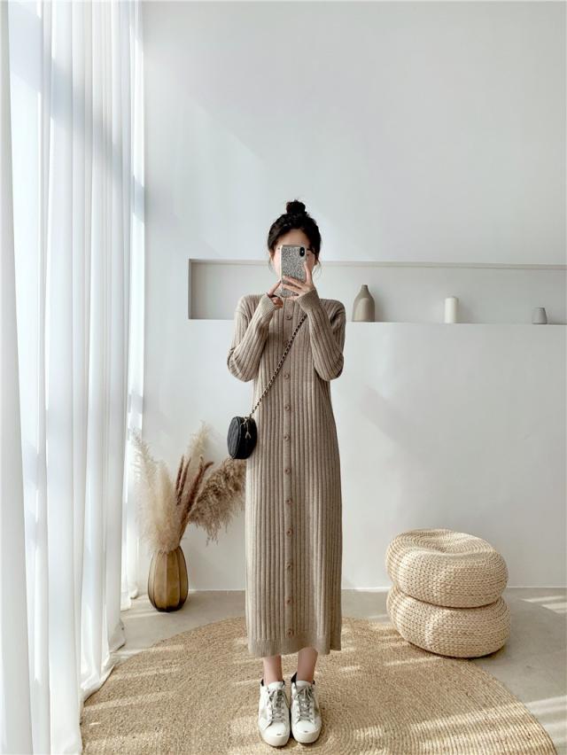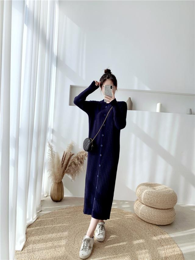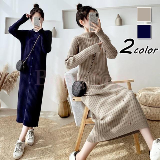 ニットワンピース レディース 40代 秋冬 長袖ワンピース ニットロングスカート ニットワンピース ひざ下 無地セーター ゆったり 韓国風 オシャレ