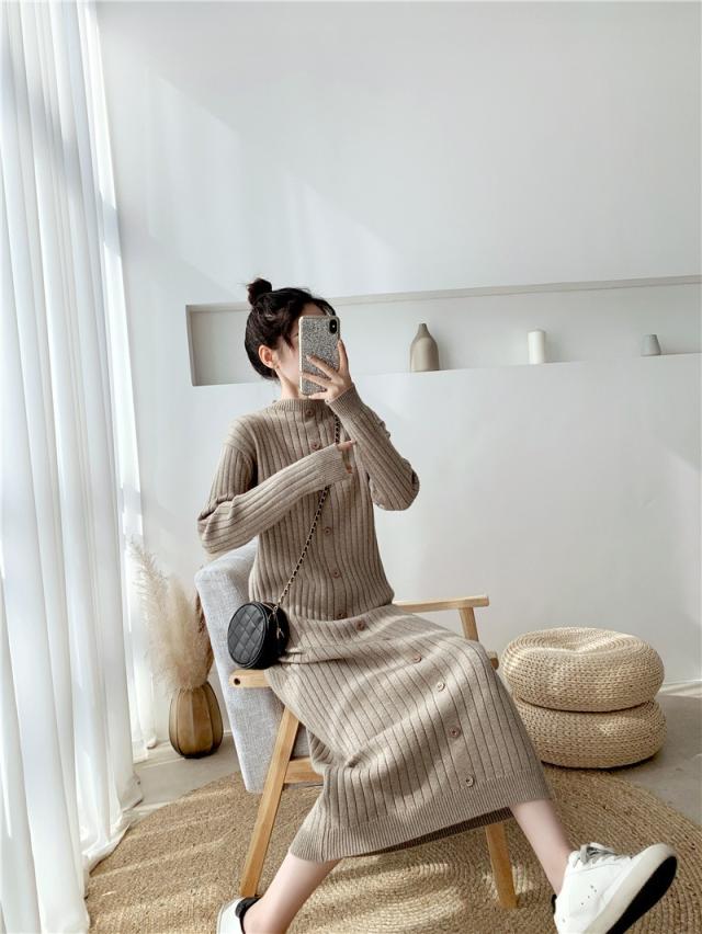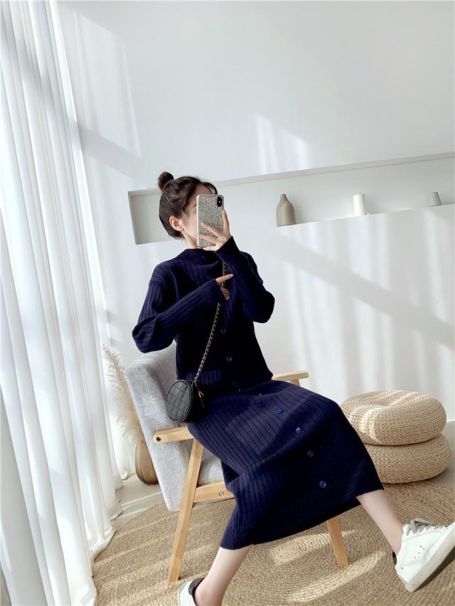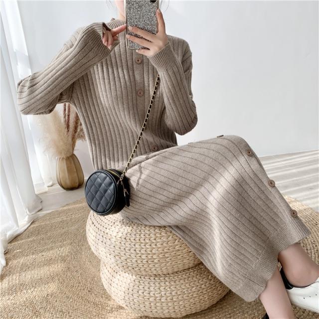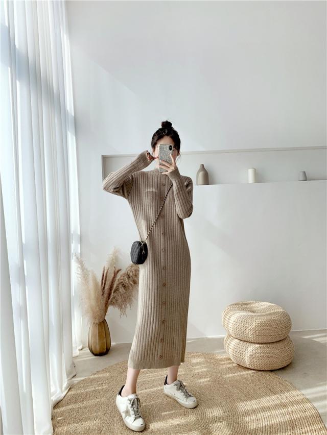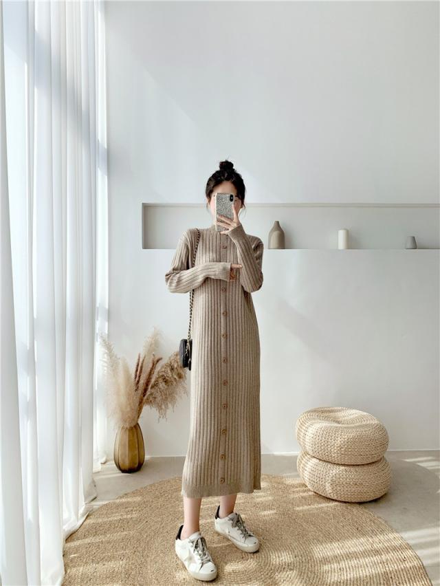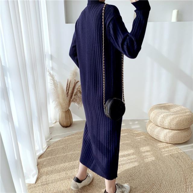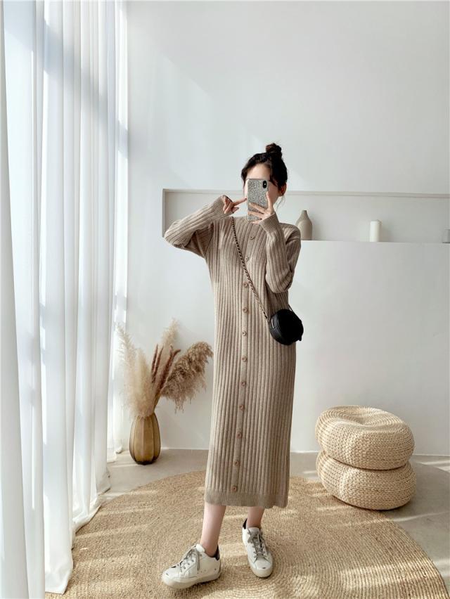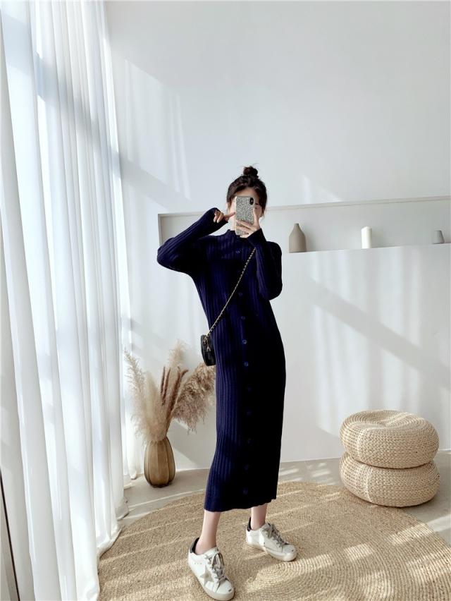 ニットワンピース レディース 40代 秋冬 長袖ワンピース ニットロングスカート ニットワンピース ひざ下 無地セーター ゆったり 韓国風 オシャレ