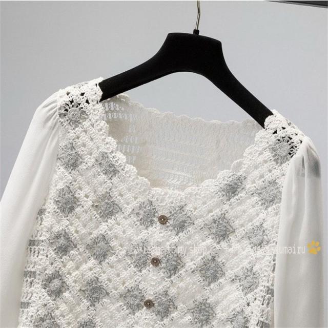 ブラウス レディース 40代 春夏秋 オシャレブラウス 幾何柄刺繍シャツ 長袖トップス ショット丈ブラウス パフスリーブ おしゃれ ゆったり シャツ30代 新作
