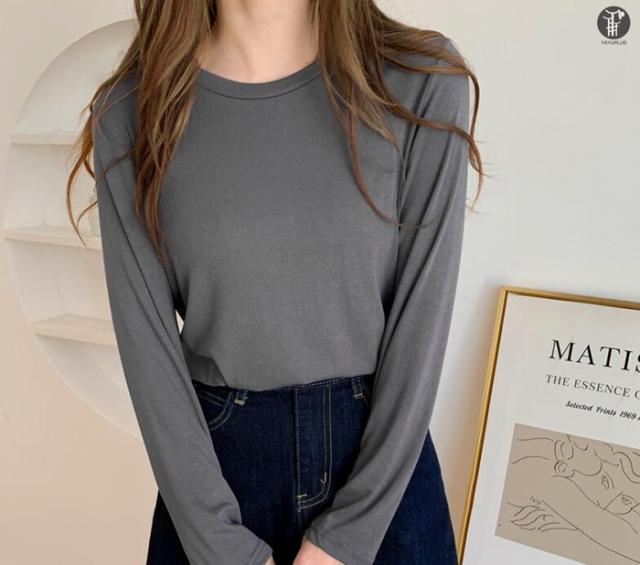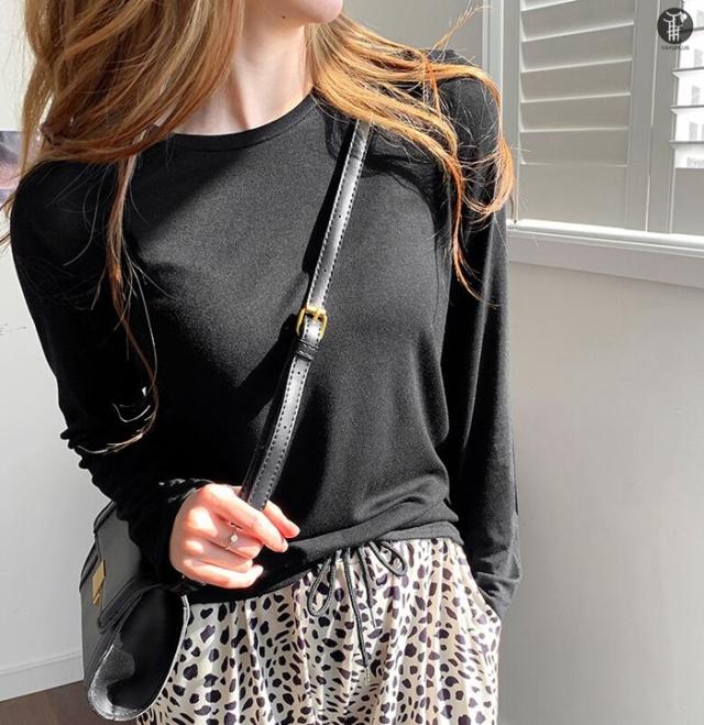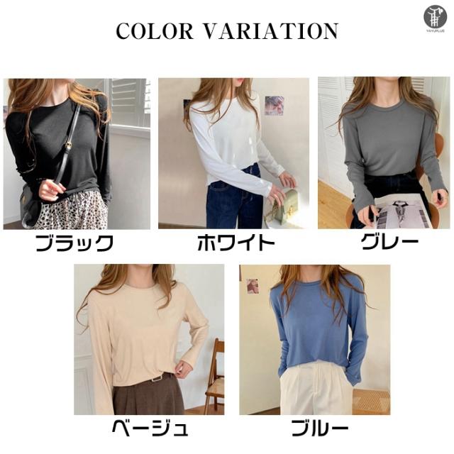 Tシャツ トップス レディース 長袖 ロンT ゆったり シンプル 無地 白 黒 グレー ベージュ 春夏