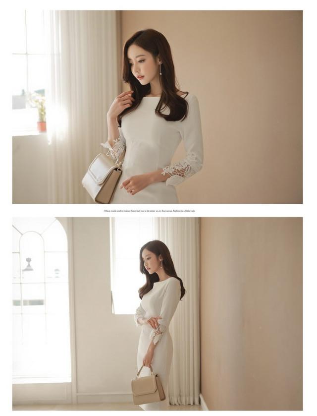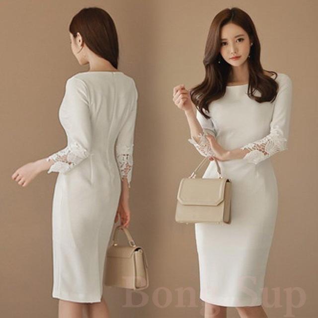 ワンピースドレス レディース 40代 春秋 きれいめ 膝丈ワンピース レースドレス 長袖タイトスカート 白結婚式ドレス 韓国風 上品 セクシー オシャレ