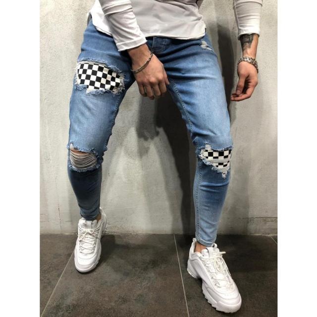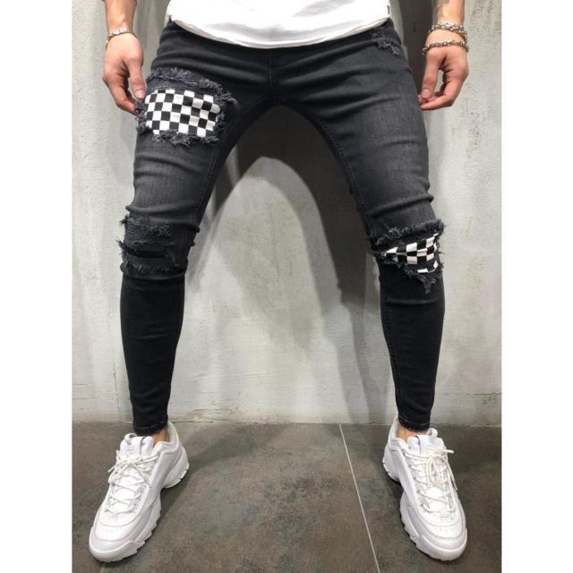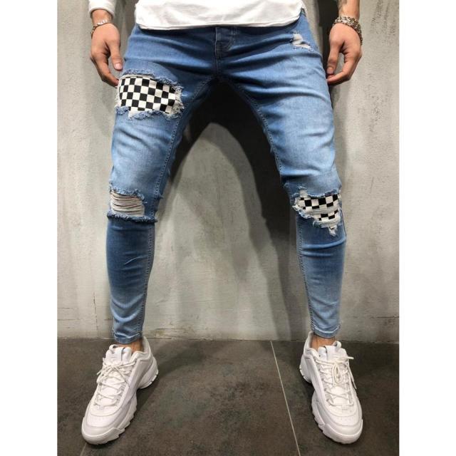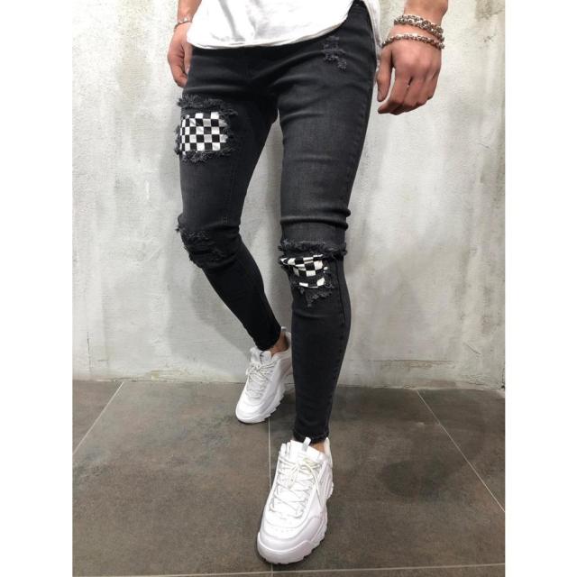 ダメージ スキニー ジーンズ メンズ スキニーパンツ パッチワーク スキニーデニムパンツ デニムパンツ デニム パンツ スリム 個性的