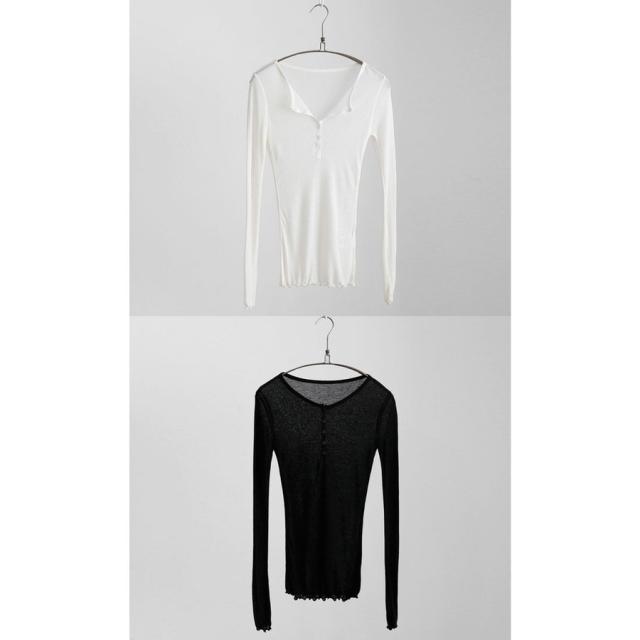 超薄手 カシュクール タイト フィットトップス Vネック レディース 無地 透け感 Tシャツ 長袖 インナー 着痩せ 4color セクシー 通勤 通学 細身 大人 上品