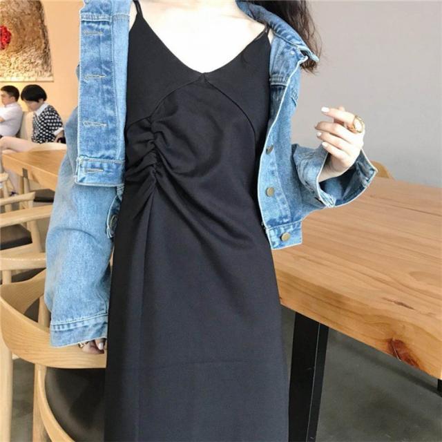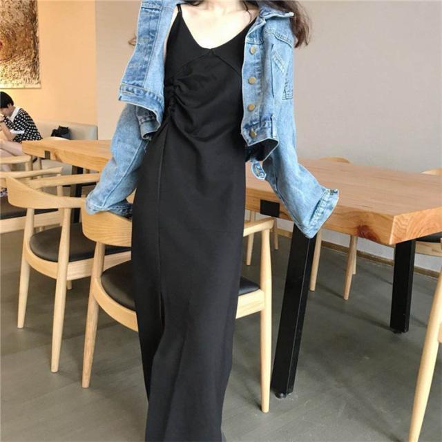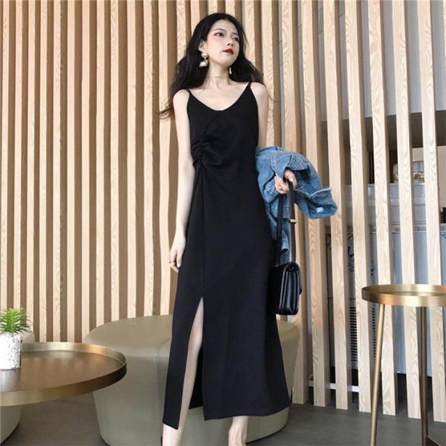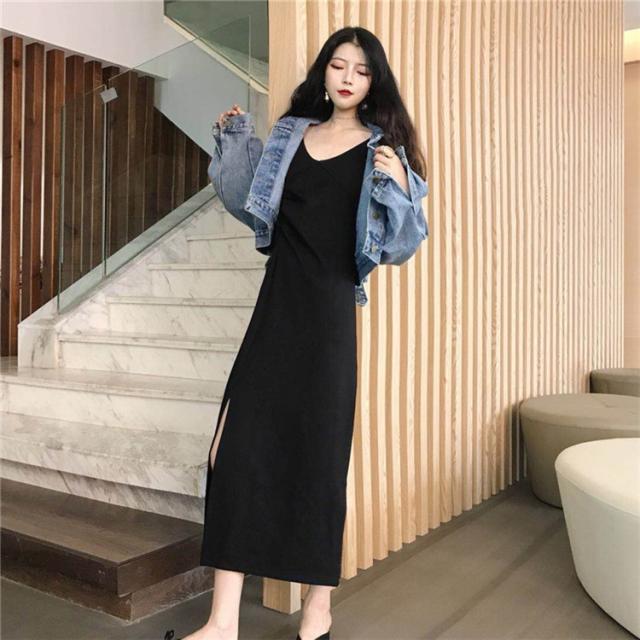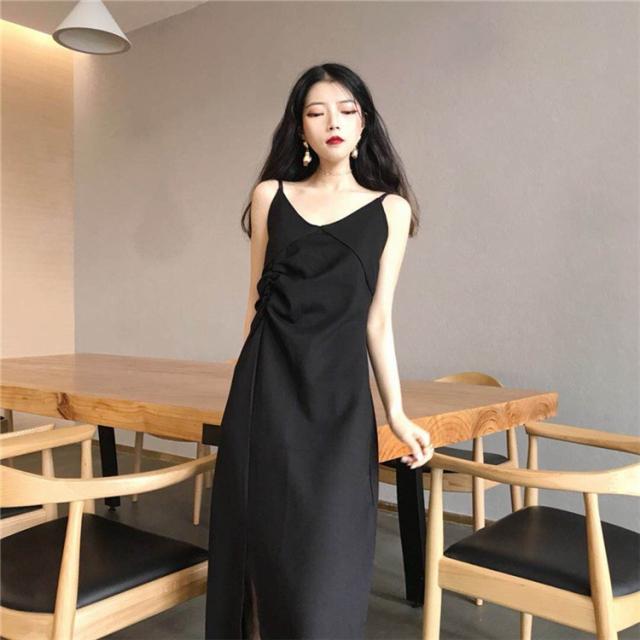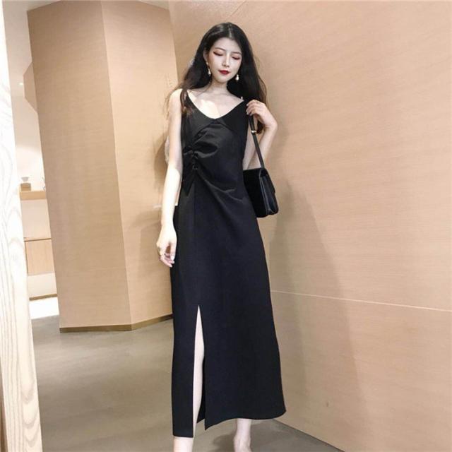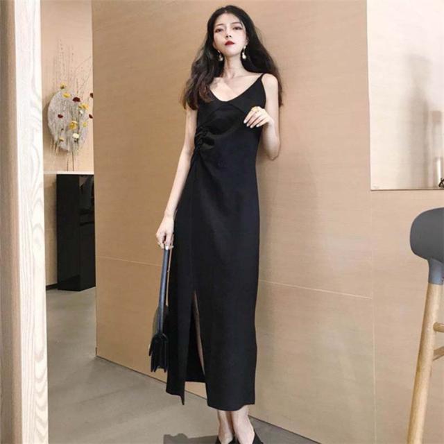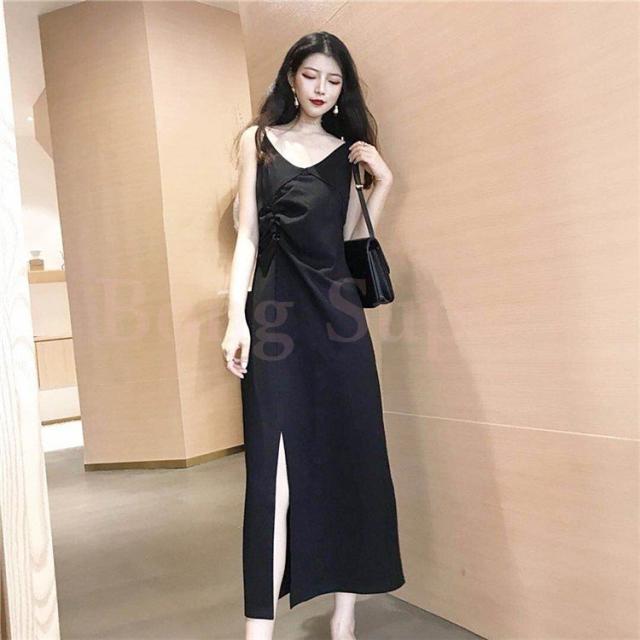 キャミソール ワンピース レディース ロングワンピース スリット ノースリーブ Vネック ミモレ丈 黒 ドレス 着痩せ 無地 オシャレ 40代