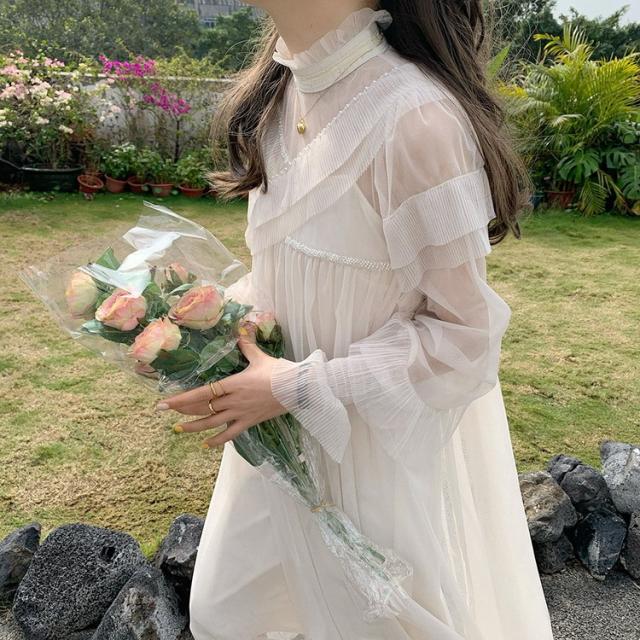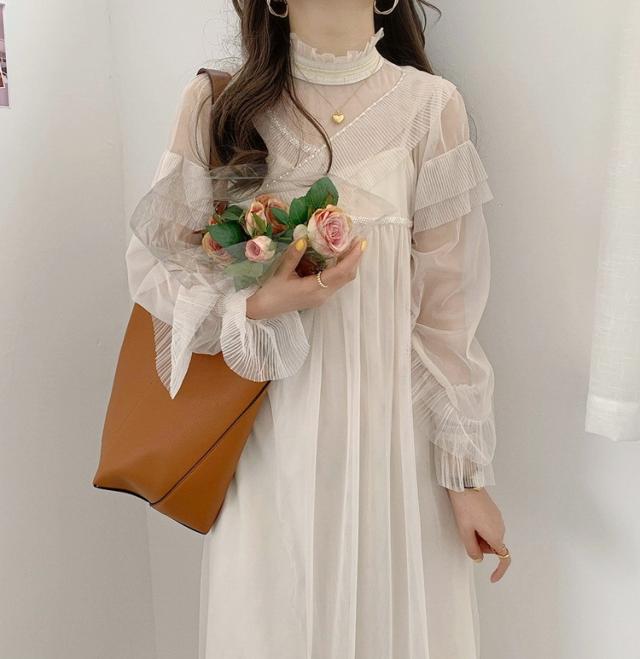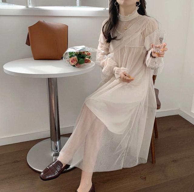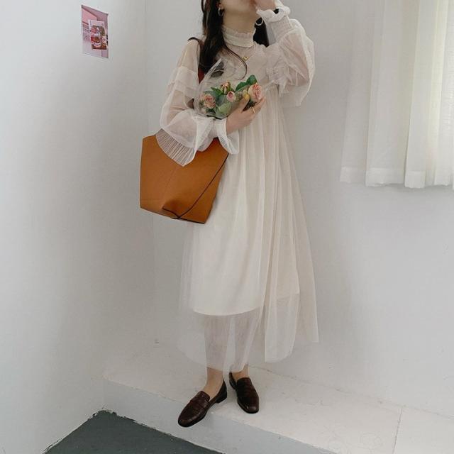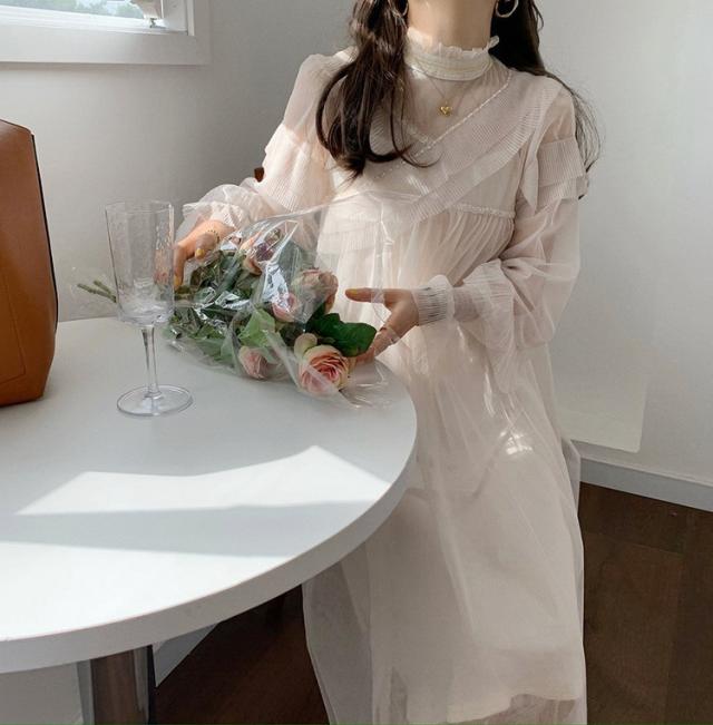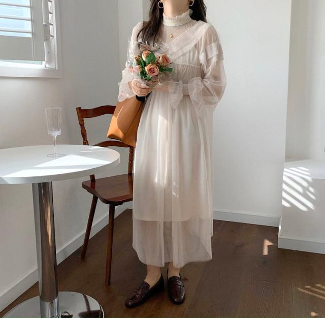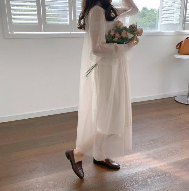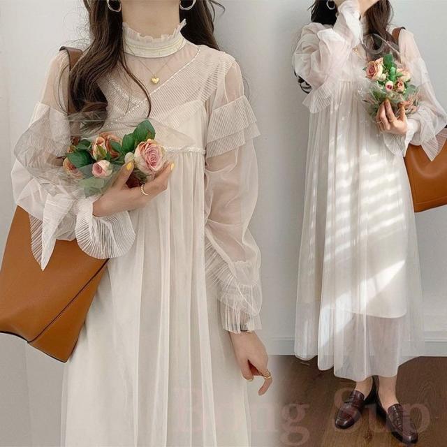 ワンピース レディース 40代 マキシワンピース 春夏 長袖ワンピース きれいめ 白チュールスカート シースルー オシャレ結婚式ドレス お出かけ 大人 30代 50代