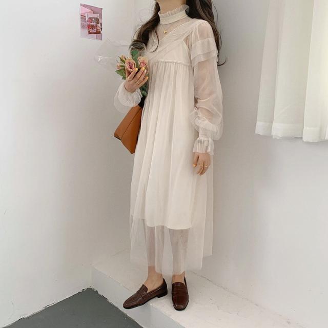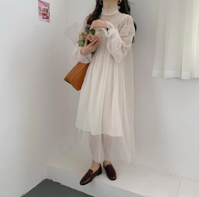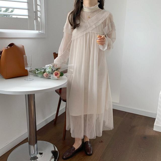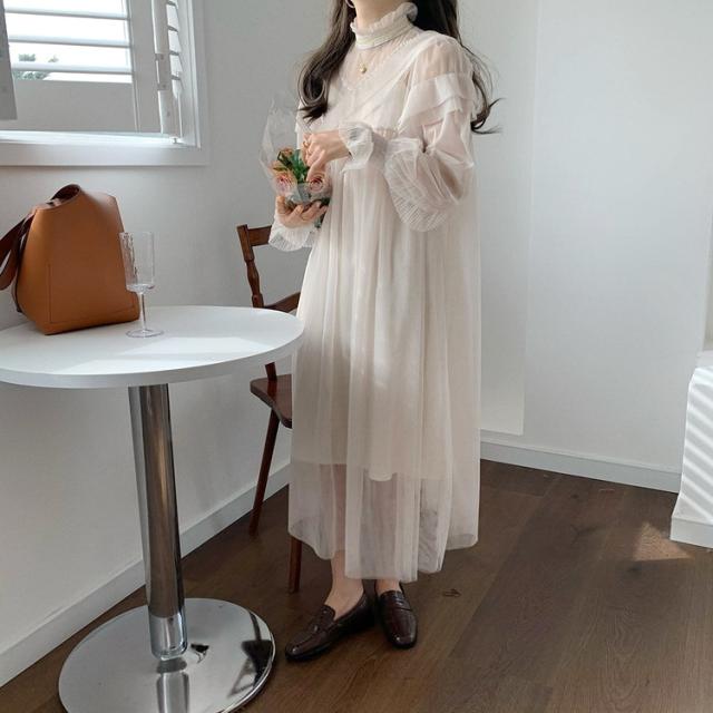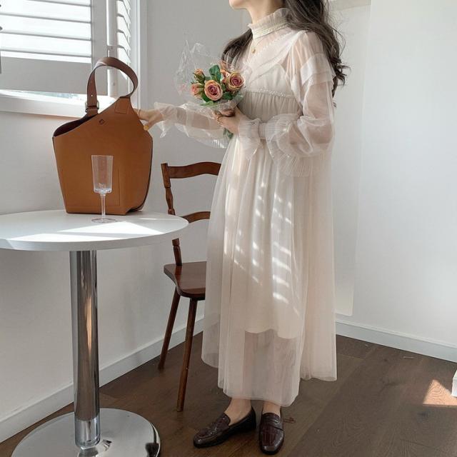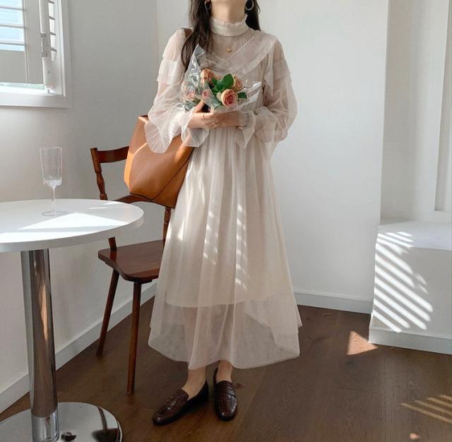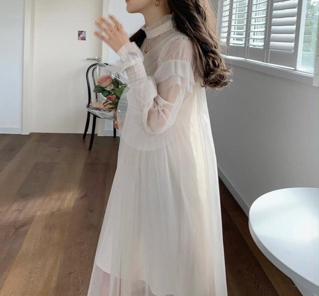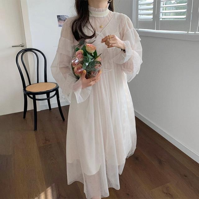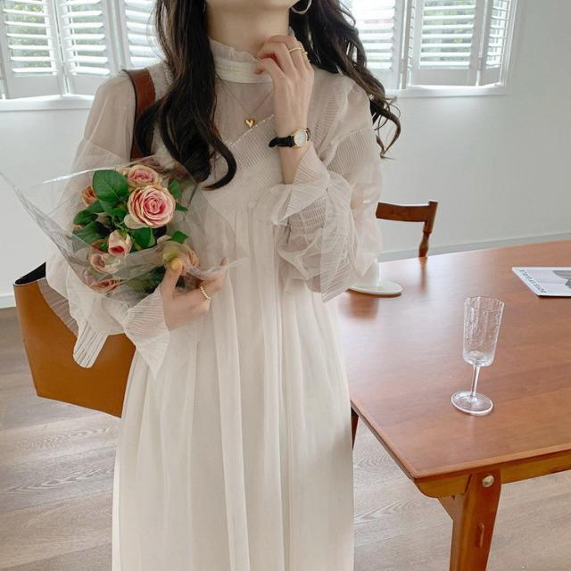 ワンピース レディース 40代 マキシワンピース 春夏 長袖ワンピース きれいめ 白チュールスカート シースルー オシャレ結婚式ドレス お出かけ 大人 30代 50代