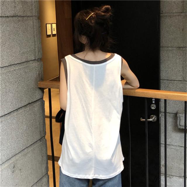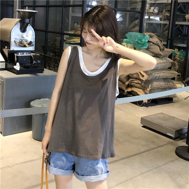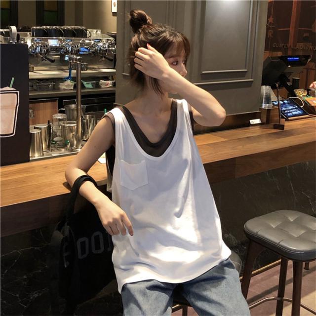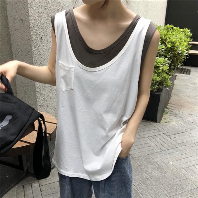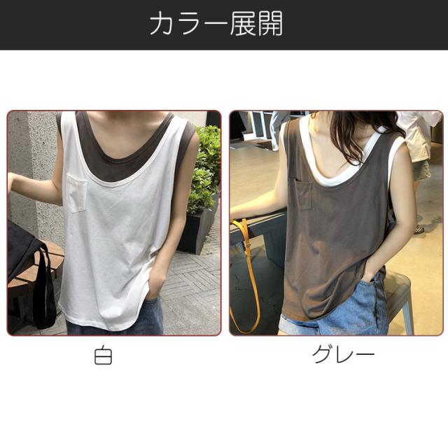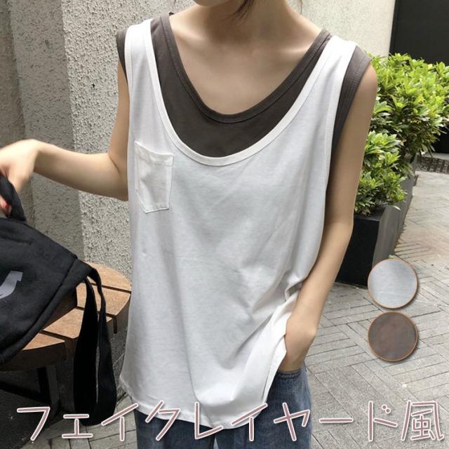 Tシャツ レディース ノースリーブ タンクトップ 夏 カットソー 春 フェイクレイヤード ロンティー トップス