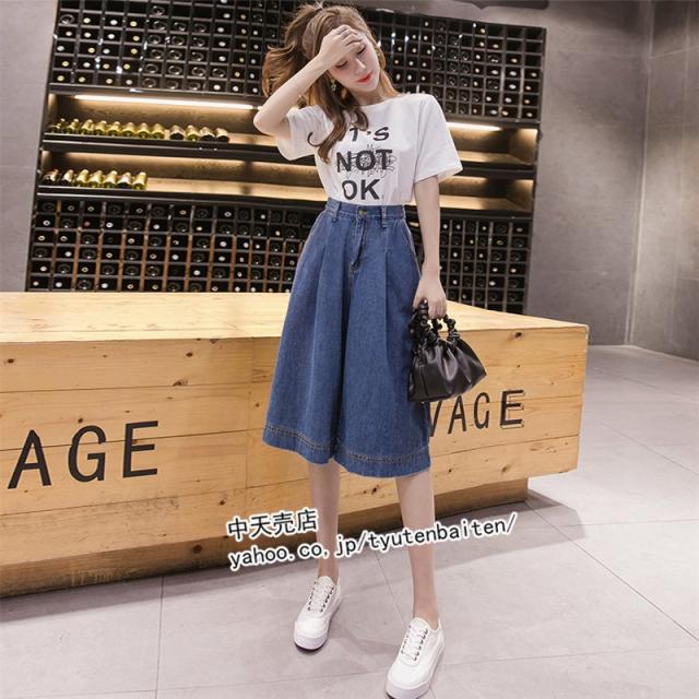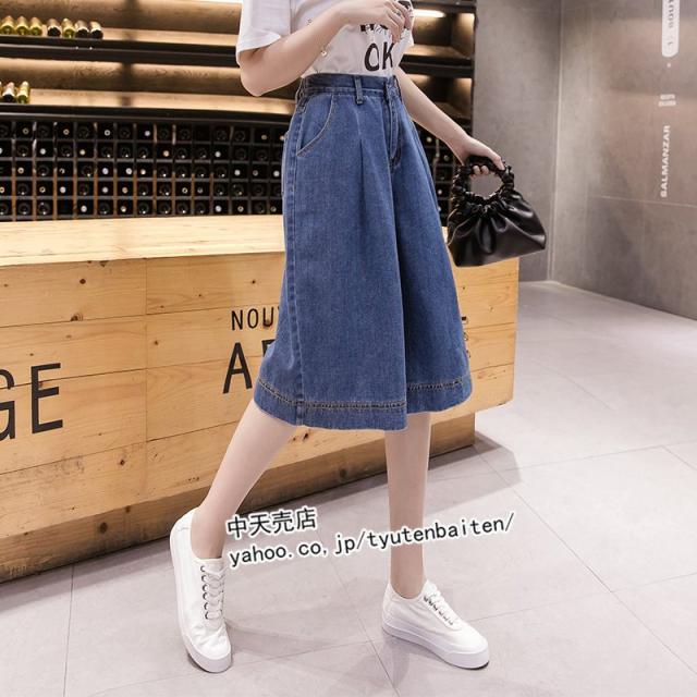 ガウチョショートパンツ デニムショートパンツ レディースデニム ハイウエストショートパンツ カジュアルショートパンツ 大きいサイズ ファッション ゆったり