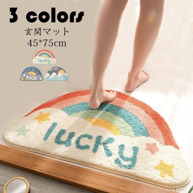 玄関マット カーペット 吸水マット 屋外 室内 洗える 半円形 玄関ラグ 滑り止め付き 浴室 足ふきマット お風呂 インテリア マット 家庭用 かわいい おしゃれ 3色