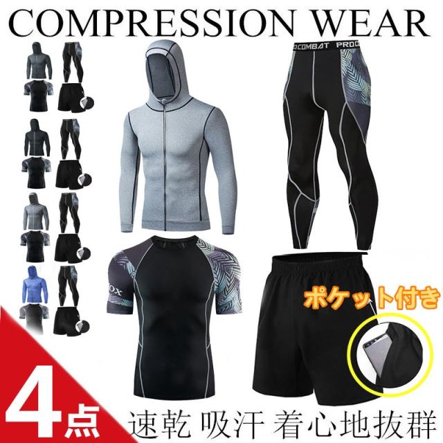 コンプレッションウェア 上下セット 4点セットアンダーシャツ タイツ メンズ 短袖長袖 加圧インナー スポーツウェア コンプレッションウェア セットアップ 速乾