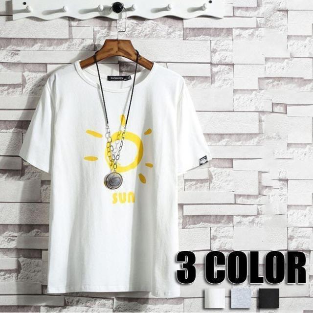 Tシャツ メンズ 半袖 プリントTシャツ クルーネック トップス ホワイト グレー ブラック カットソー メンズ 3色