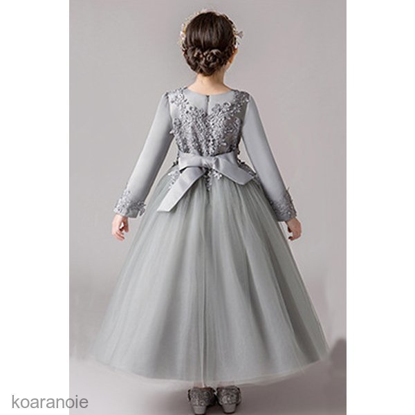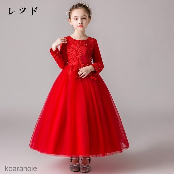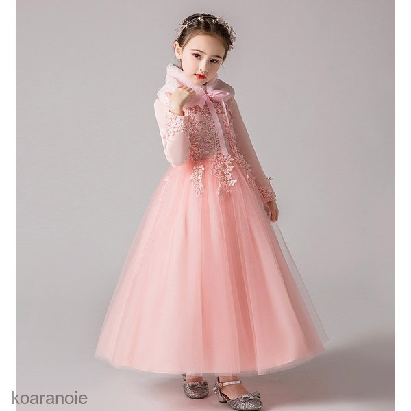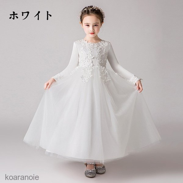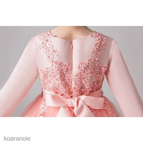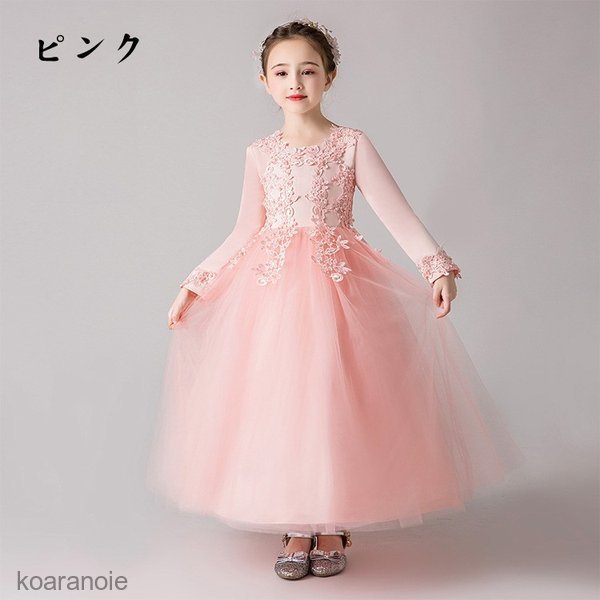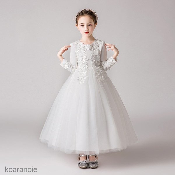 子供服ドレス 発表会 ピアノ発表会 結婚式 長袖 花飾り フォーマル ドレス 女の子 二次会 花嫁 ジュニア キッズドレス パーティードレス プレ 上品ドレス 秋冬