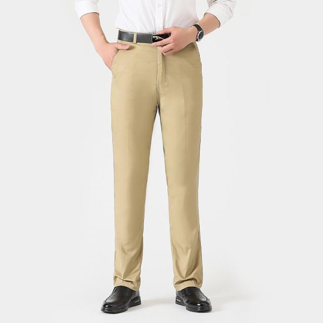 スラックス ボトムス メンズ ハイウエスト ストレートパンツ カジュアル ゆったり ロングパンツ 無地 通勤 40代 50代 長ズボン 春 秋 普