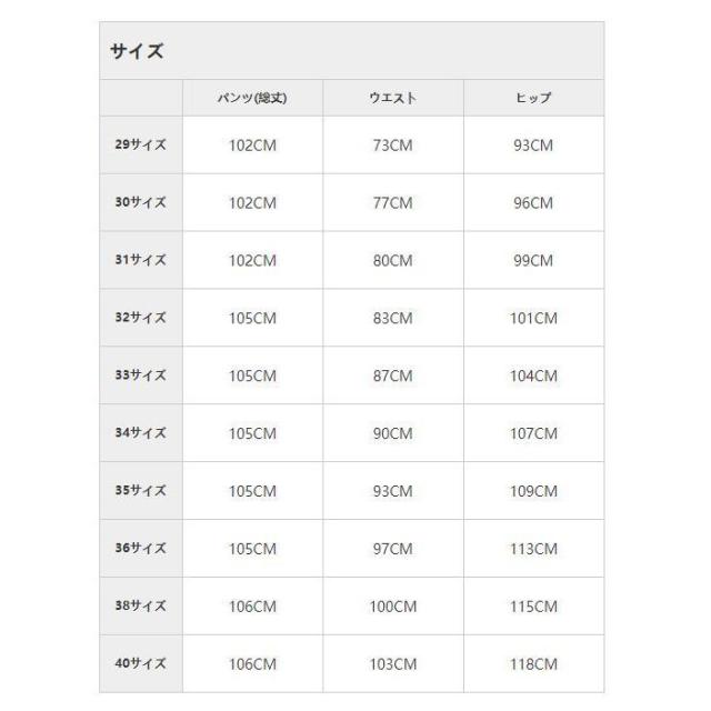 | サイズ | 29 30 31 32 33 34 35 36 38 40 |
