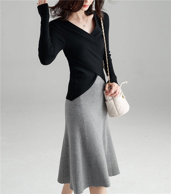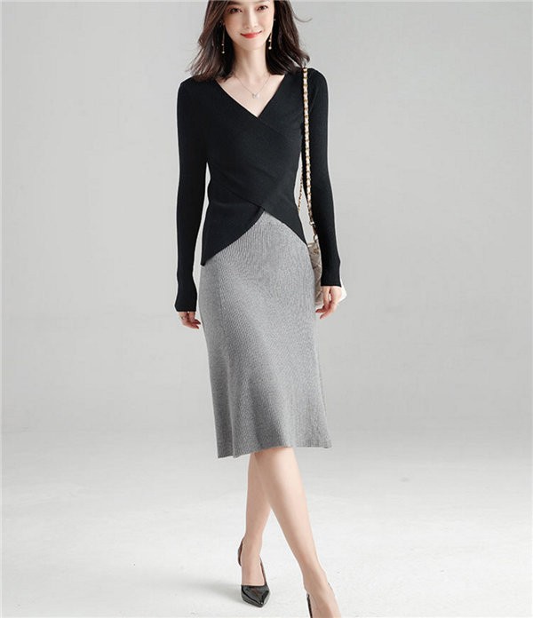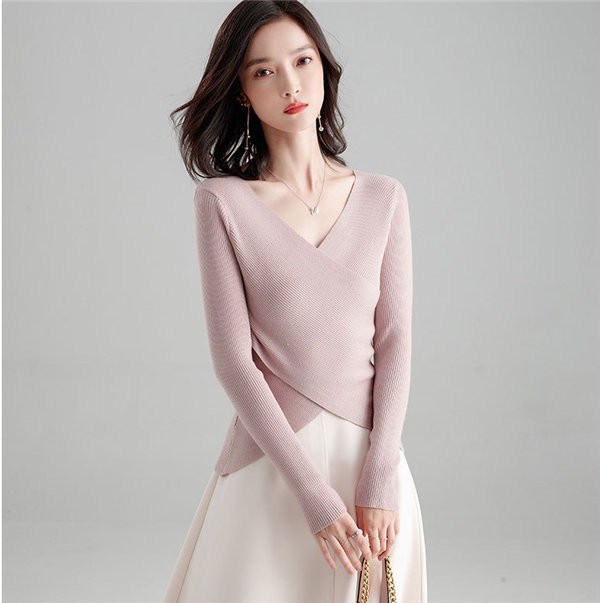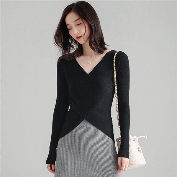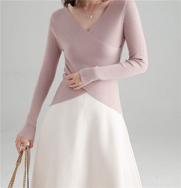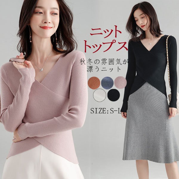 送料無料 ニット セーター ニットトップス Vネック 長袖 レディース 無地 リブニットプルオーバー トップス ニットチュニック 大きいサイズ ストレッチ