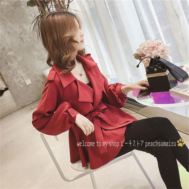 トレンチコート レディース 40代 ショット丈スーツジャケット スプリングコート 春コート アウター 秋服 韓国風 オーバー 30代 40代 50代 大きいサイズ オシャレ