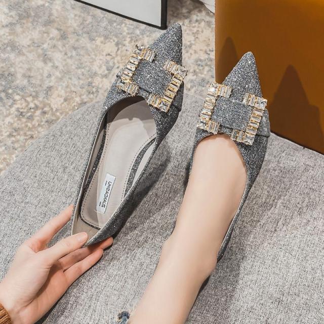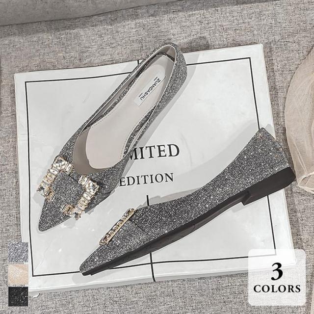 シューズ パンプス ポインテッドトゥ ローヒール 布地 ストーン ナチュラル 細見え 歩きやすい 大人女子 パーティー エレガント 贅沢 /[zci36]