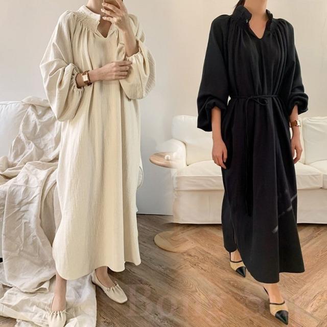シャツワンピース レディース 40代 マキシワンピース 春夏秋 長袖ワンピース きれいめ パフスリーブ ロング丈スカートオシャレカジュアル韓国風 30代 ゆったり