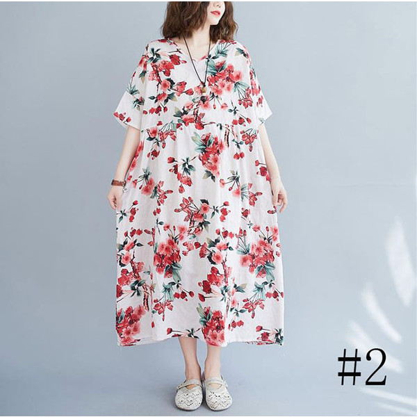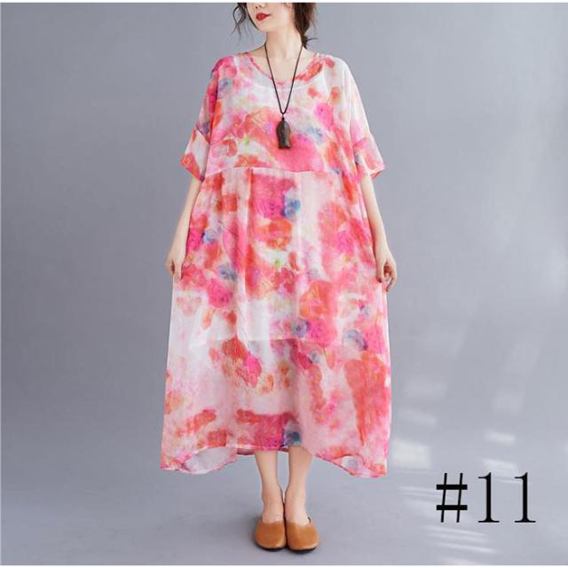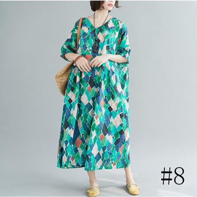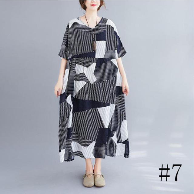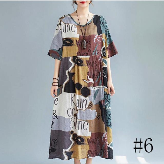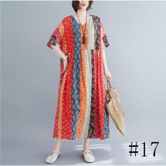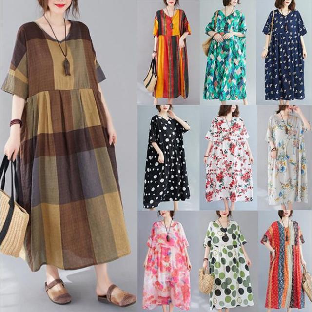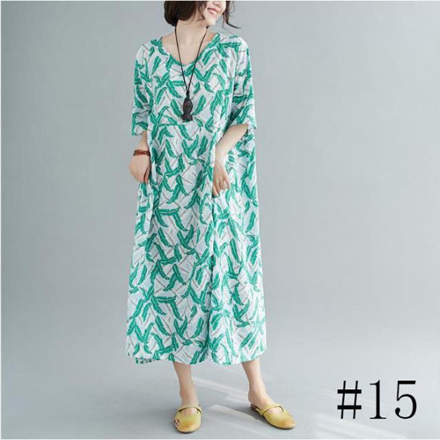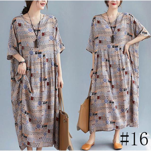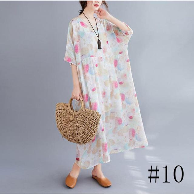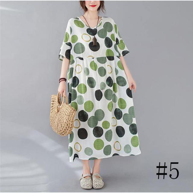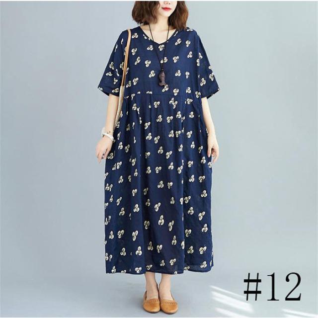 ワンピース レディース マキシ丈 大きいサイズ 花柄 大きいサイズ ゆったり 半袖 リネン ワンピース キレイめ 20代 30代 40代 50代 2021春夏新作