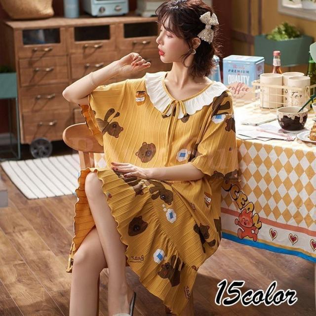 ネグリジェ パジャマ レディース 春夏新作 半袖ワンピース パジャマ 総柄/無地 大きいサイズ ネグリジェ フレア ロング丈ワンピ パジャマ 部屋着 大人可愛い