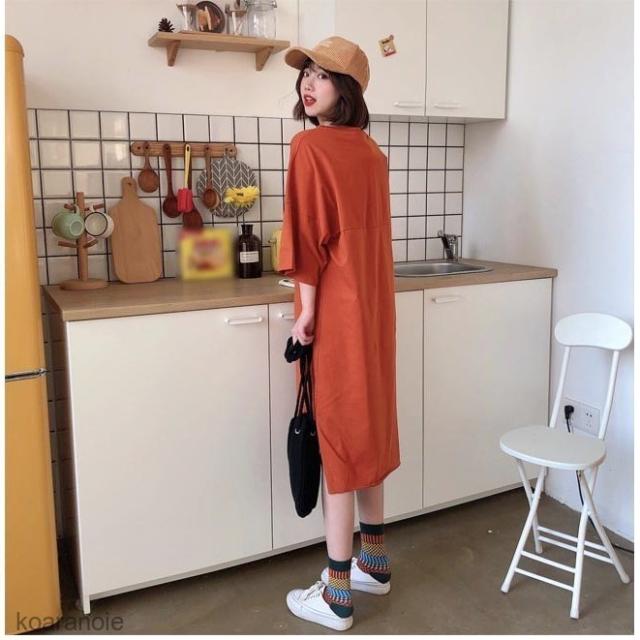 Tシャツワンピース レディース ワンピース ゆったり ロングTシャツ 夏 Tシャツワンピース Tシャツ 五分丈袖ワンピース サマーワンピース