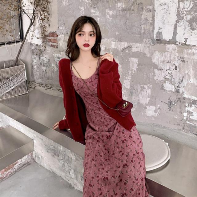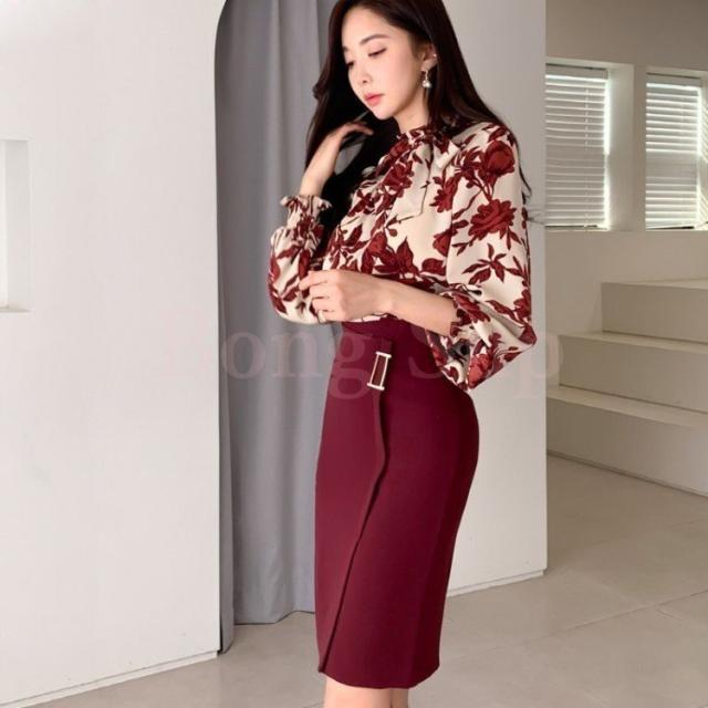 ワンピースセットアップ レディース 40代 春秋 セットアップ通勤 きれいめ タイトスカート 長袖ブラウス 花柄 オシャレvネック 韓国風 ビジネス OL 着痩せ 新作