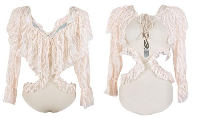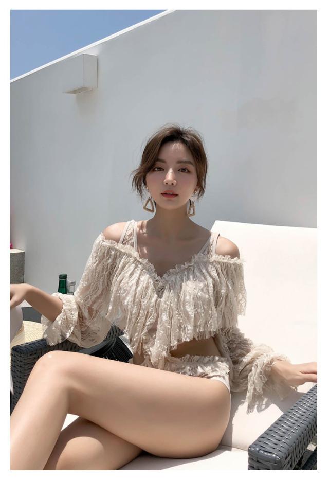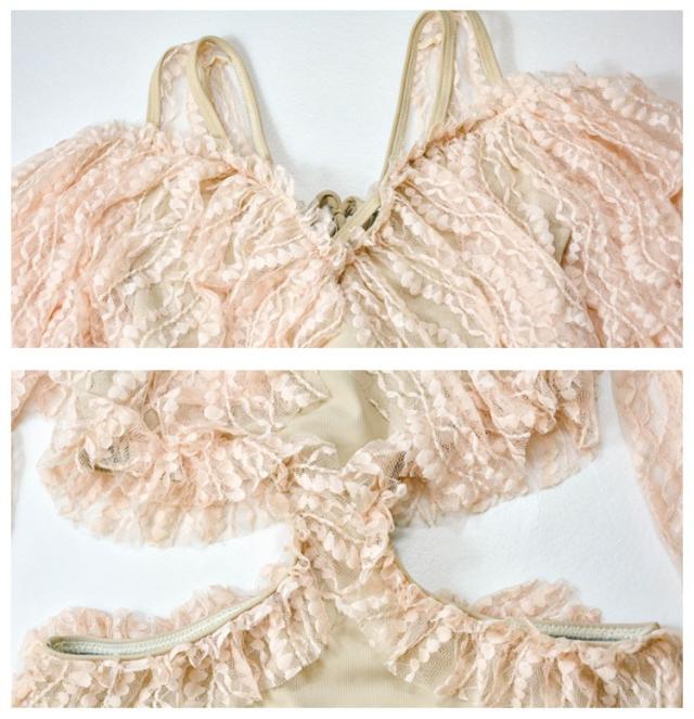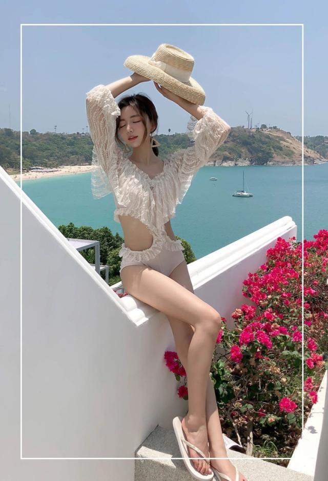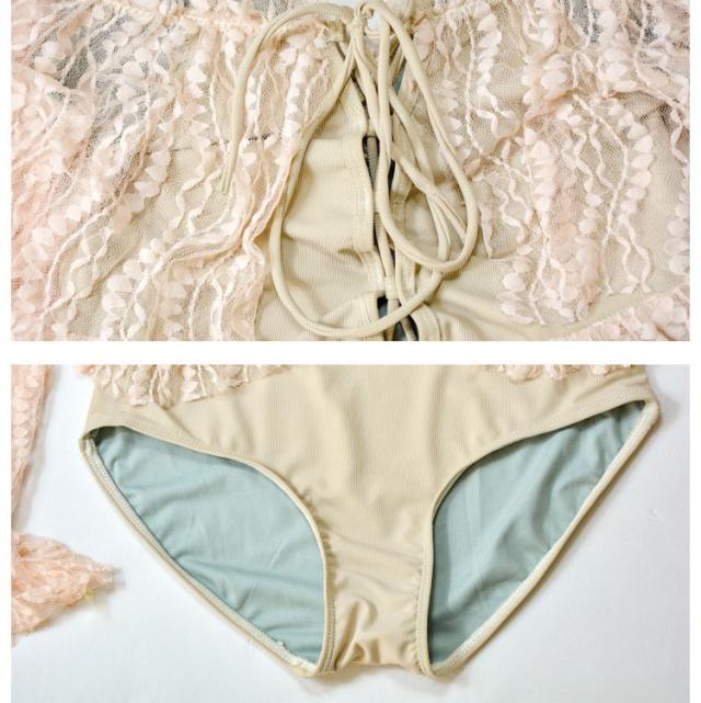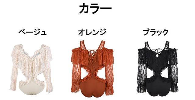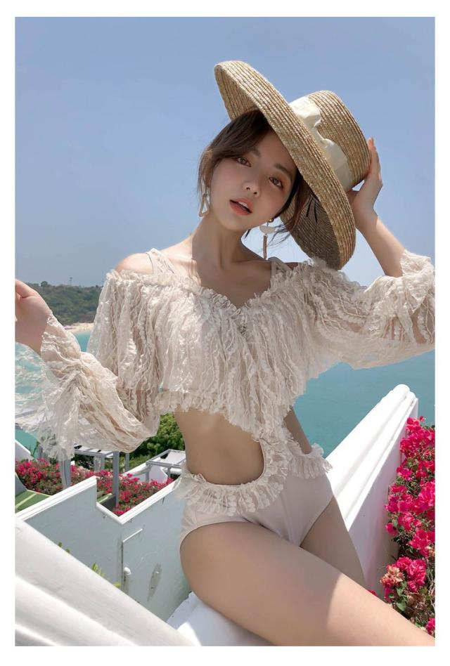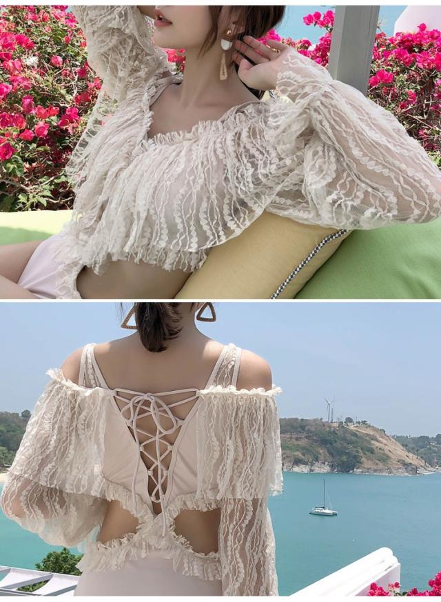 水着 レディース ワンピース水着 レディースビキニ 韓国風 40代 30代 長袖 レース セクシー 肩出し フレア きれいめ バックリボン 3色