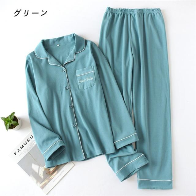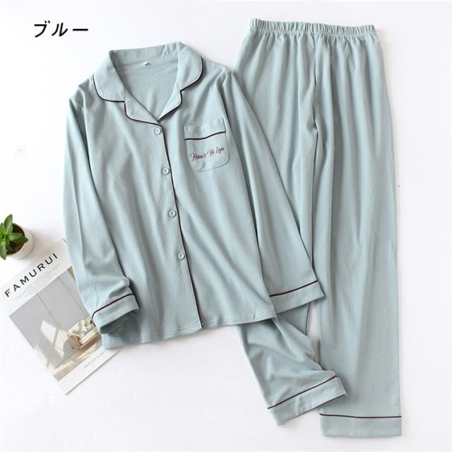 2点パジャマ カップルペアルック ルームウェア 秋冬 純綿 ペアパジャマ長袖 パジャマペアルックお揃いレディースメンズ ネグリジェ レディース