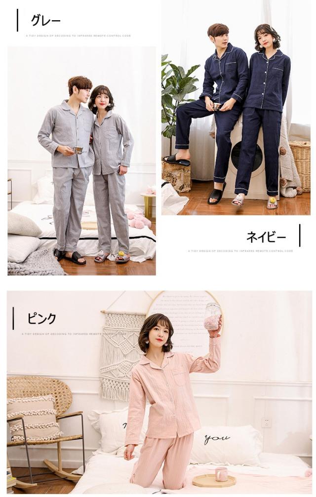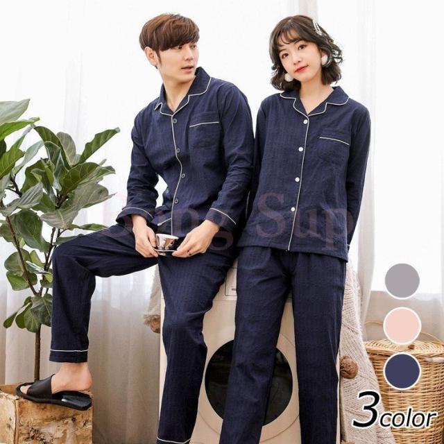 パジャマ カップル ペアルック パジャマ 綿100% 春秋ルームウェア ペアパジャマ長袖 無地 ペアパジャマ お揃い レディース上下セット メンズ パジャマ 単品売り