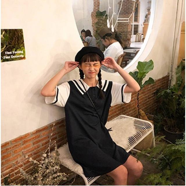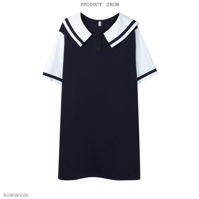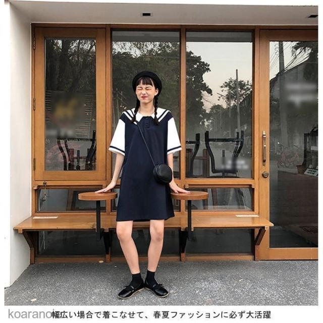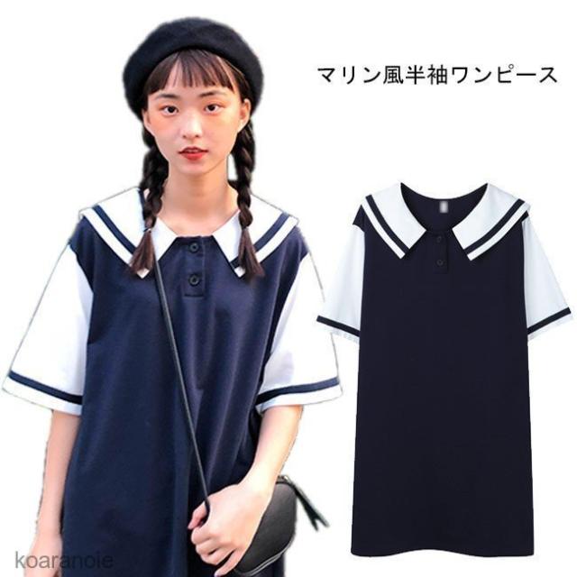 半袖ワンピース マリンセーラー レディース ワンピース 薄手 半袖 ゆったり 女性用 ショートワンピ 夏物 お洒落 レトロ 可愛い