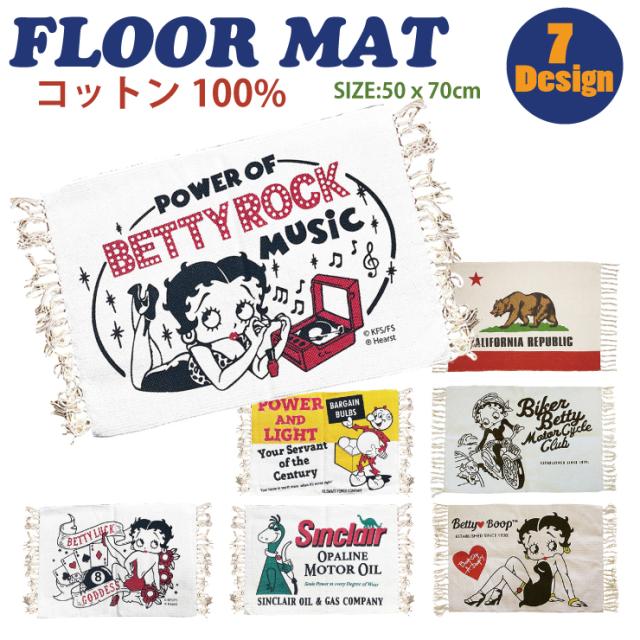 【メール便送料無料】フロアマット-01 生成りベース アメリカン アメリカン雑貨 7種類 ベティ FEPC シンクレア カリフォルニア コットン100% 玄関マット フリンジ付き【キッチン リビング トイレ 部屋 ガレージ お風呂 デスク オフェス 会社】┃