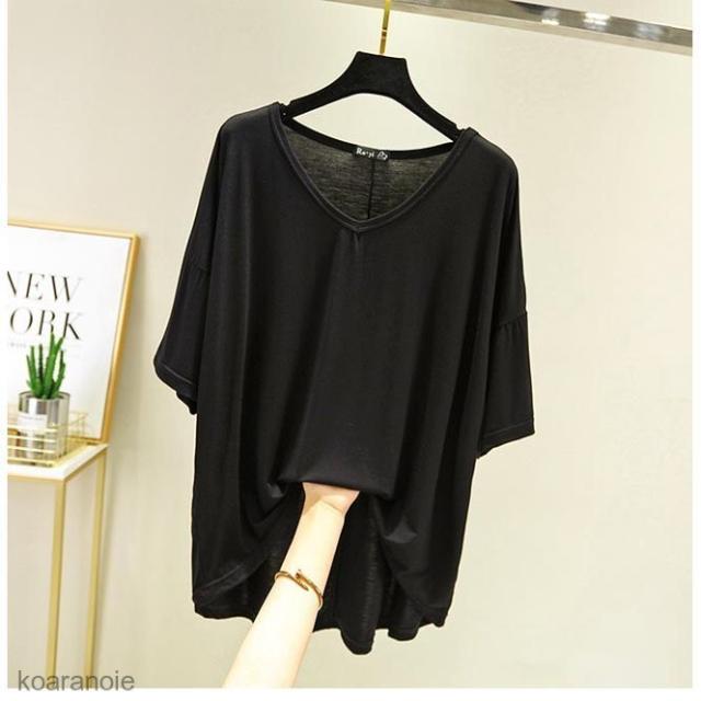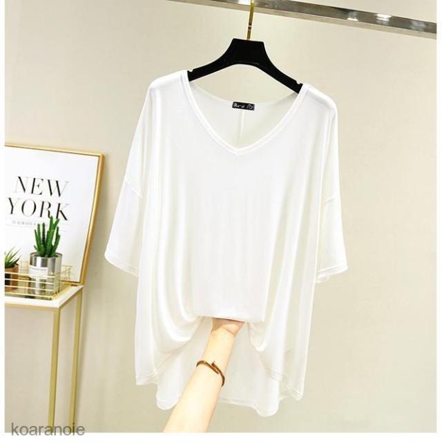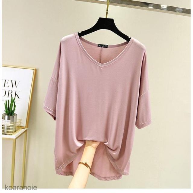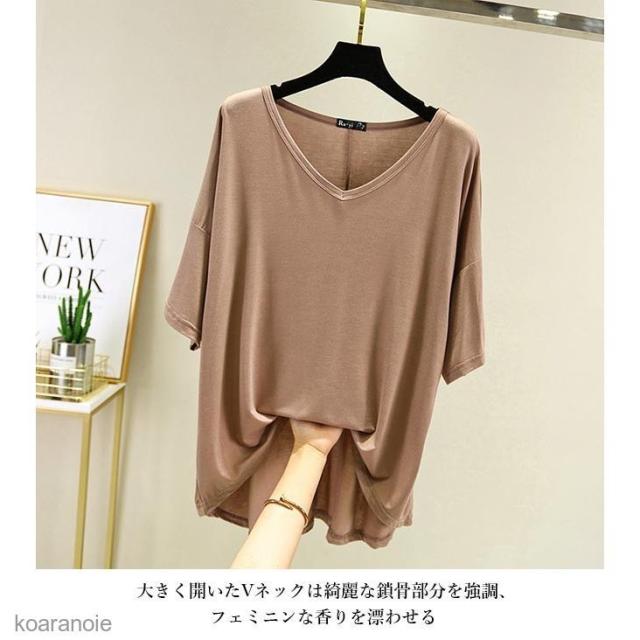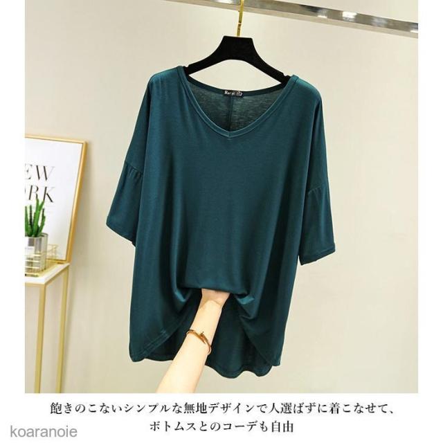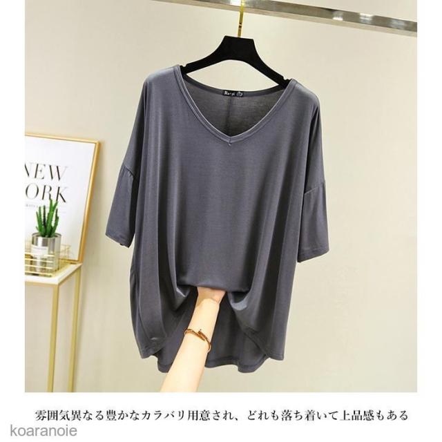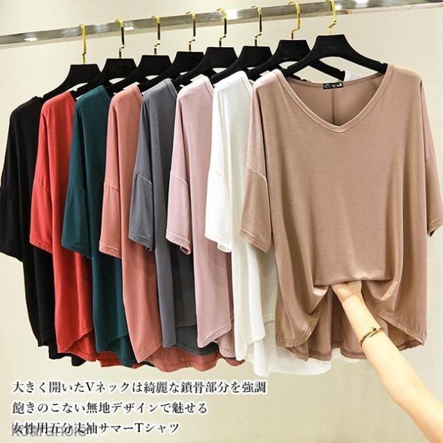 Tシャツ 夏 レディース ゆったりTシャツ 半袖Tシャツ Vネック サマーTシャツ 無地Tシャツ カットソー 薄手 5分丈袖Tシャツ 着痩せ